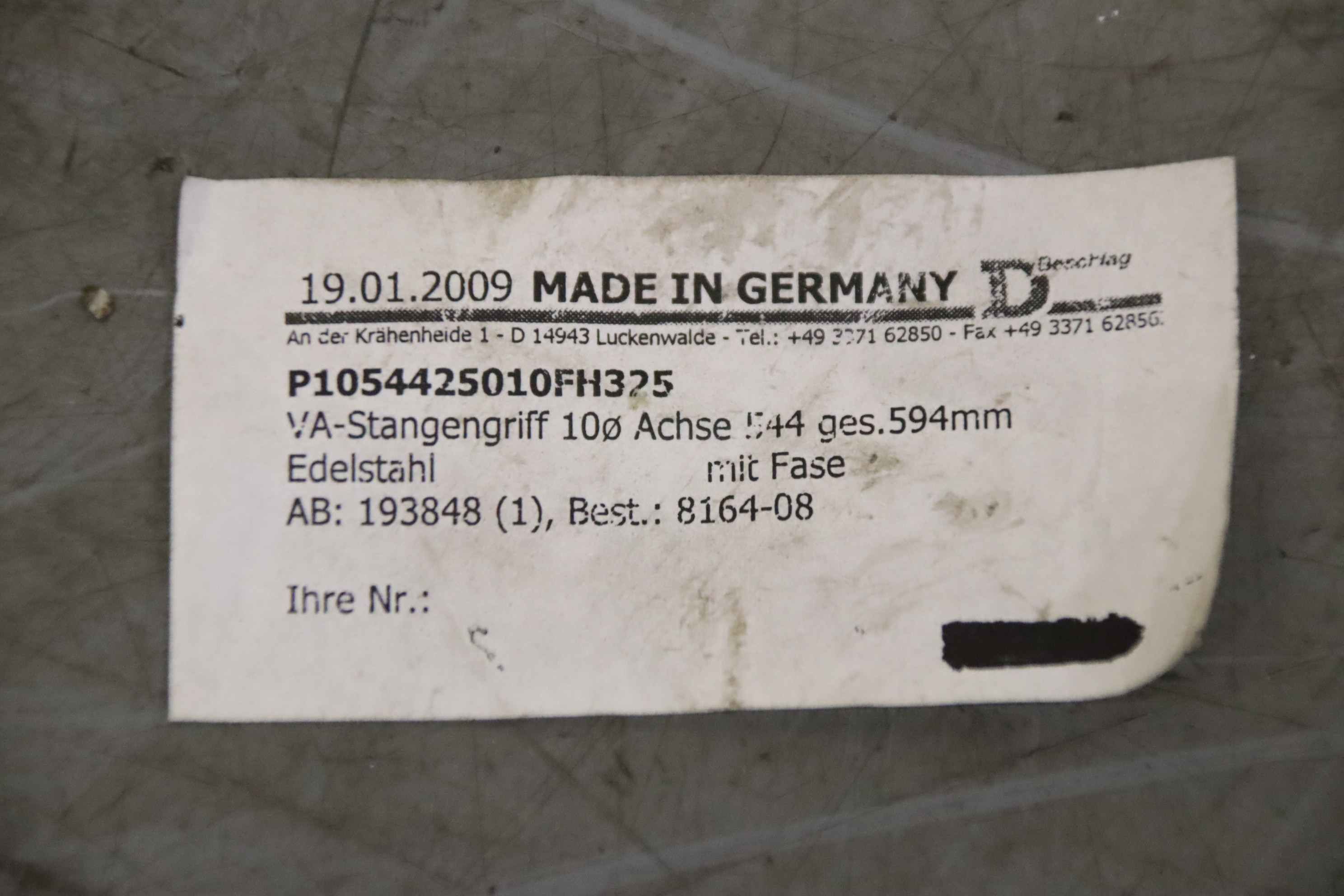 Maschinentyp: VA-Stangengriff Ø10 x 594 mm