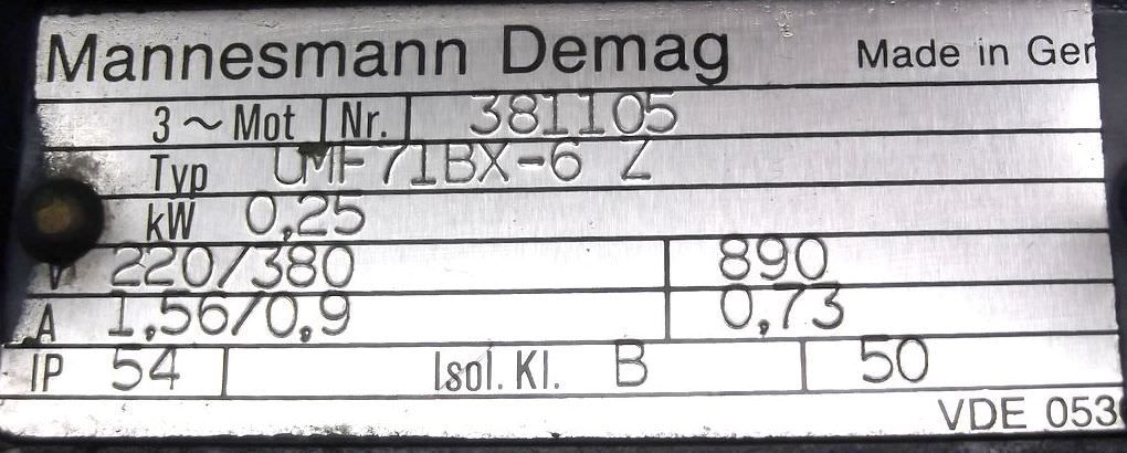 Maschinentyp: Getriebemotor 0,25 kW 89 U/min