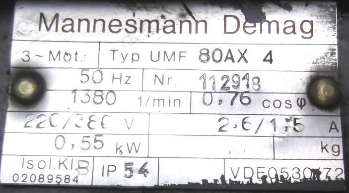 Maschinentyp: Getriebemotor 0,55 kW 197 U/min