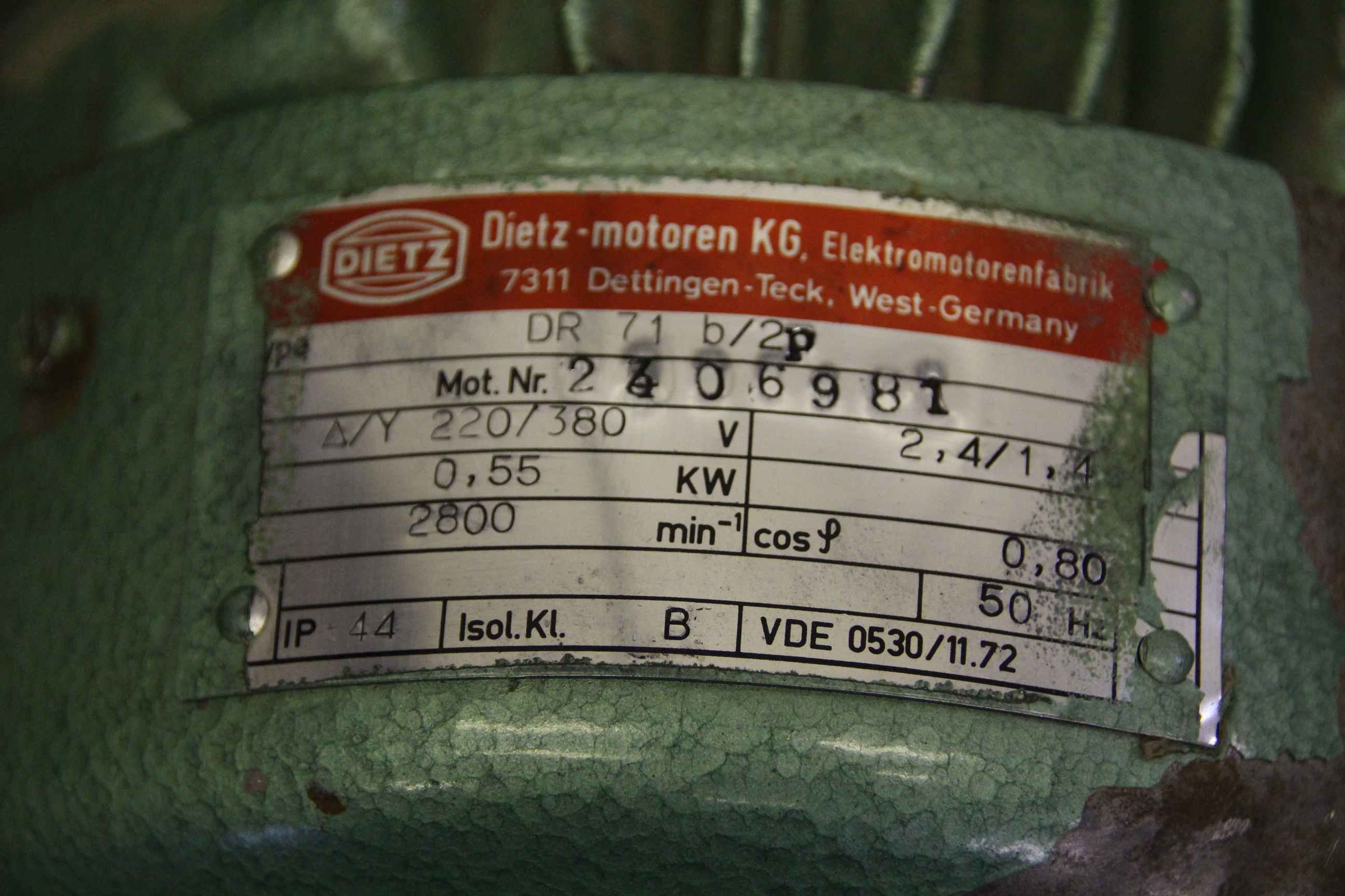 Maschinentyp: Elektromotor 0,55 kW 2800 U/min