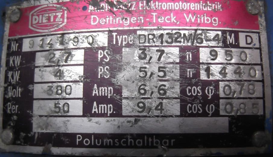 Maschinentyp: Elektromotor 2,7/4 kW 950/1440 U/min