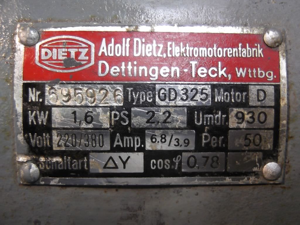 Maschinentyp: Elektromotor 1,6 kW 930 U/min