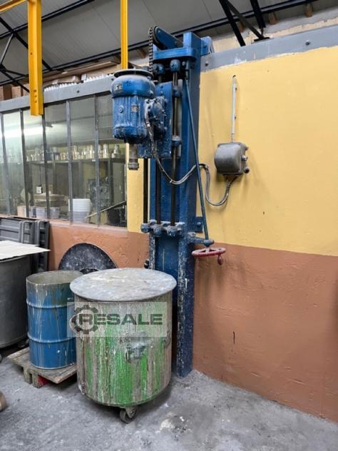 Gebrauchter Einantriebsdissolver von ZANELLI für 200 Liter Fässer. Leistung des Hauptantriebs (Dispergierscheibe): 13 kW, einstellbare Drehzahl.