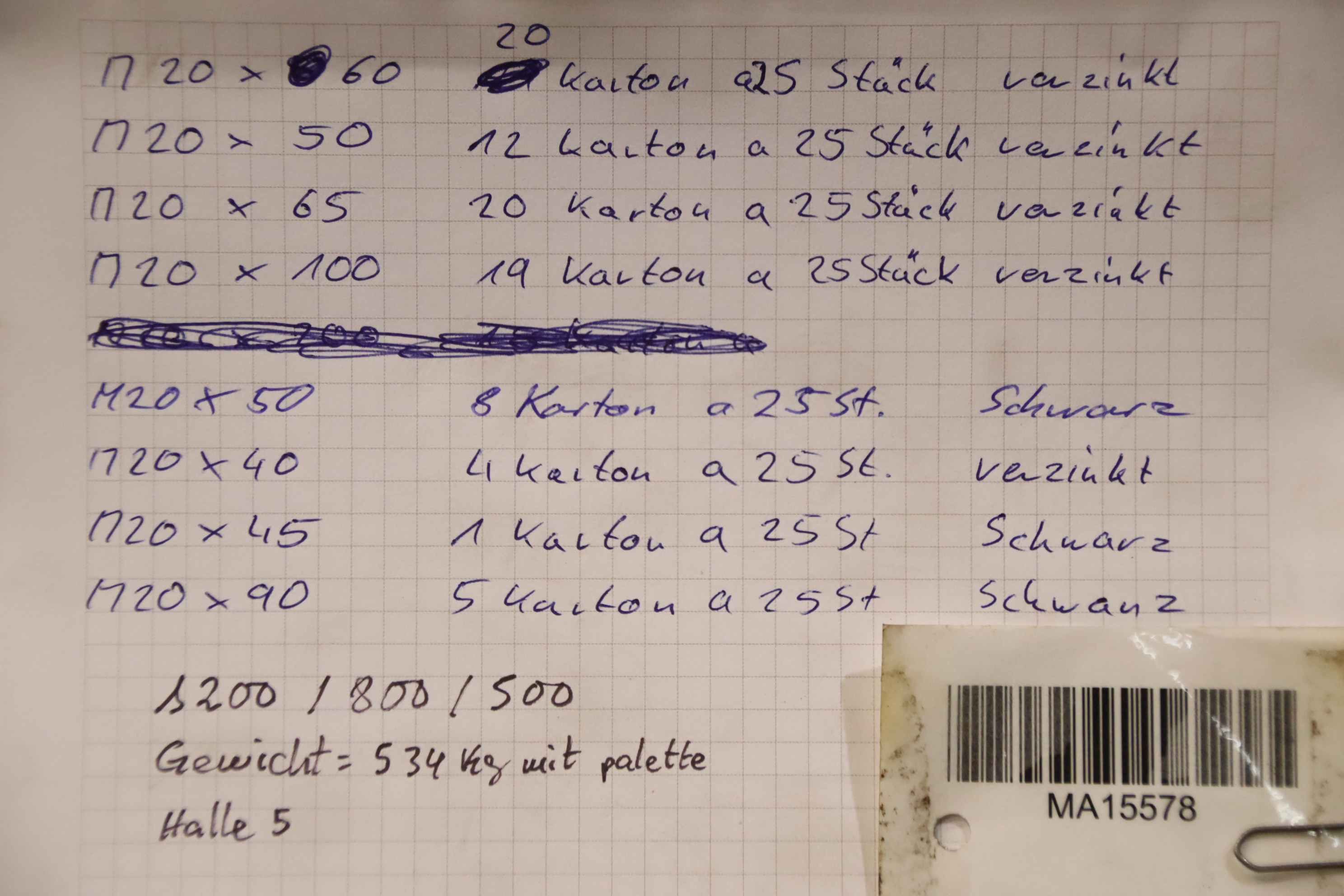 Maschinentyp: Sechskantschrauben M20, DIN 931, 514 kg