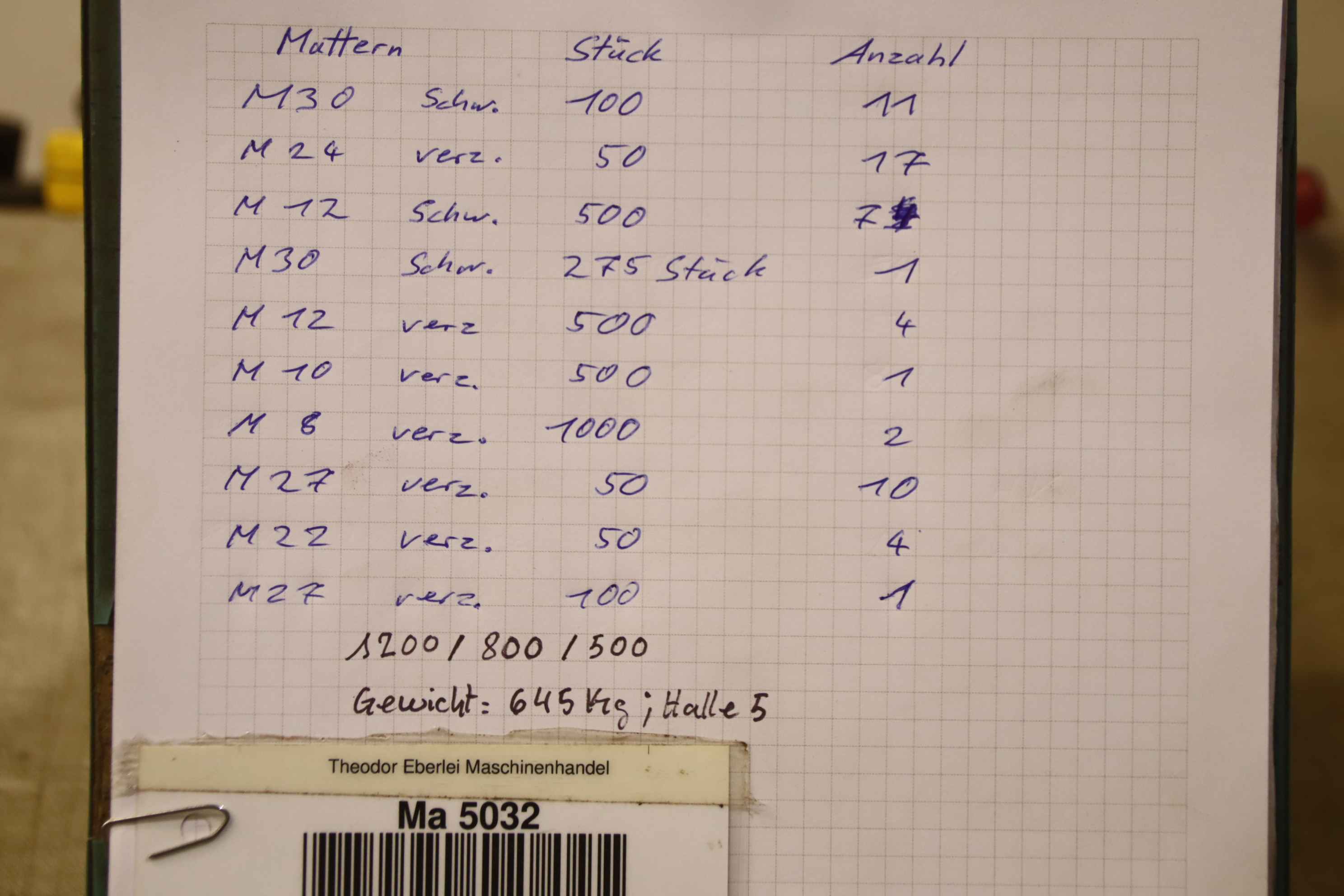 Maschinentyp: Sechskantmuttern 645 kg