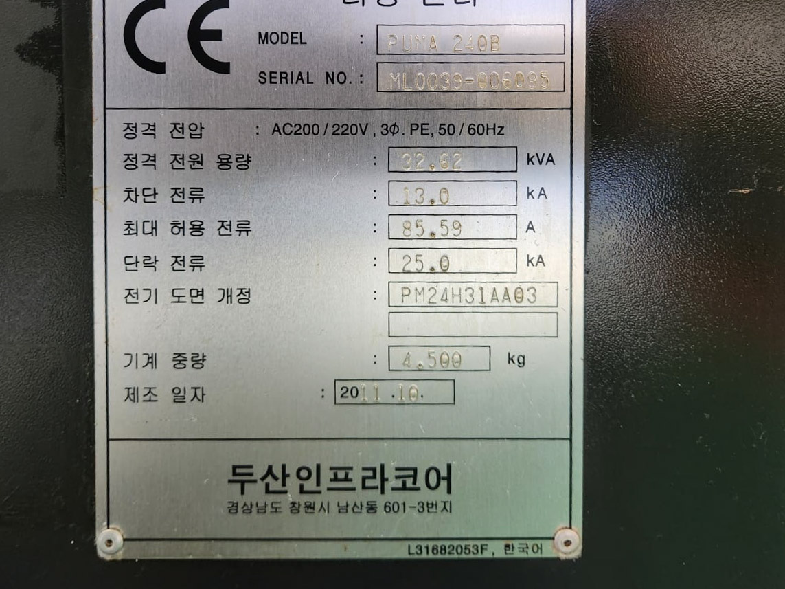 | 2011 | DOOSAN | PUMA 240B | |