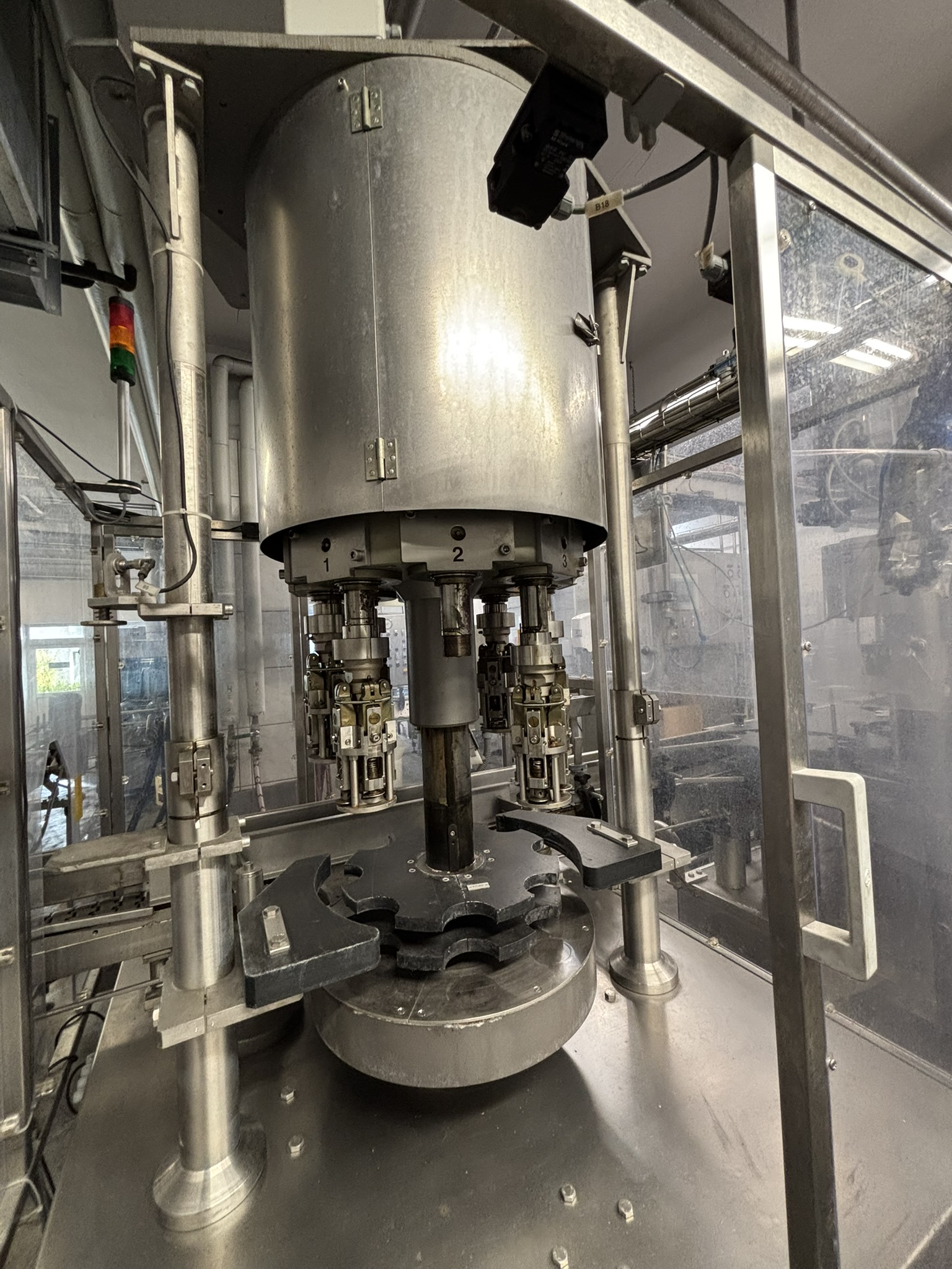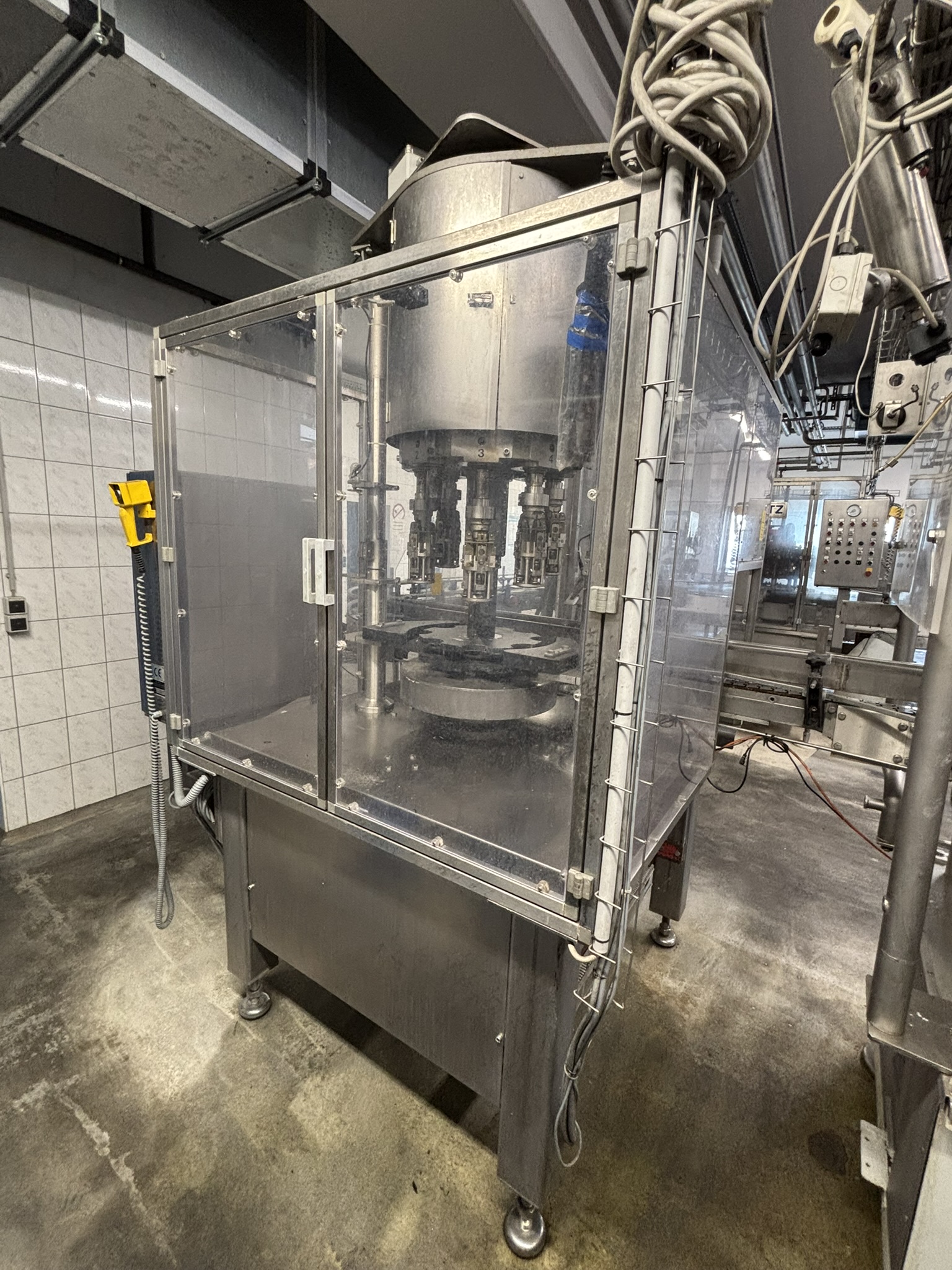 Übersicht Der Solo-Schraubverschließer wurde 2004 von der deutschen Maschinenbaufirma Dr. Datz hergestellt. Die Maschine kann Aluminium-Schraubverschlüsse verarbeiten. Sie wurde in einer Abfüllanlage eines Mineralwasserherstellers eingesetzt. Die Anlage wurde hauptsächlich für Lohnabfüllungen genutzt und wurde nun stillgelegt, um in Teilen verkauft zu werden. Technische Daten: Anzahl der Verschlusselemente: 8 Kapazität: bis zu 20.000 Flaschen pro Stunde Verschlusstyp: 28mm Aluminium-Schraubverschluss Arbeitsrichtung: von links nach rechts Format: 0,7l GDB-Flasche