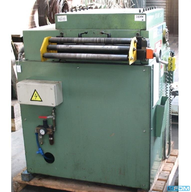 Blechbreite - max.: 200 mm Richtwalzendurchmesser: 40 mm Anzahl Richtwalzen: 5 angetriebene Einzug- und Auslaufwalzen Blechdicke - min.: 0,4 mm Blechdicke - max.: 2,0 mm Gewicht: 170 stufenlos regelbare Vorschubgeschwindigkeit Rechts- und Linkslauf Betriebsartenwahlschalter für manuell und Automatikbetrieb Bandschlaufensteuerung sehr guter Zustand