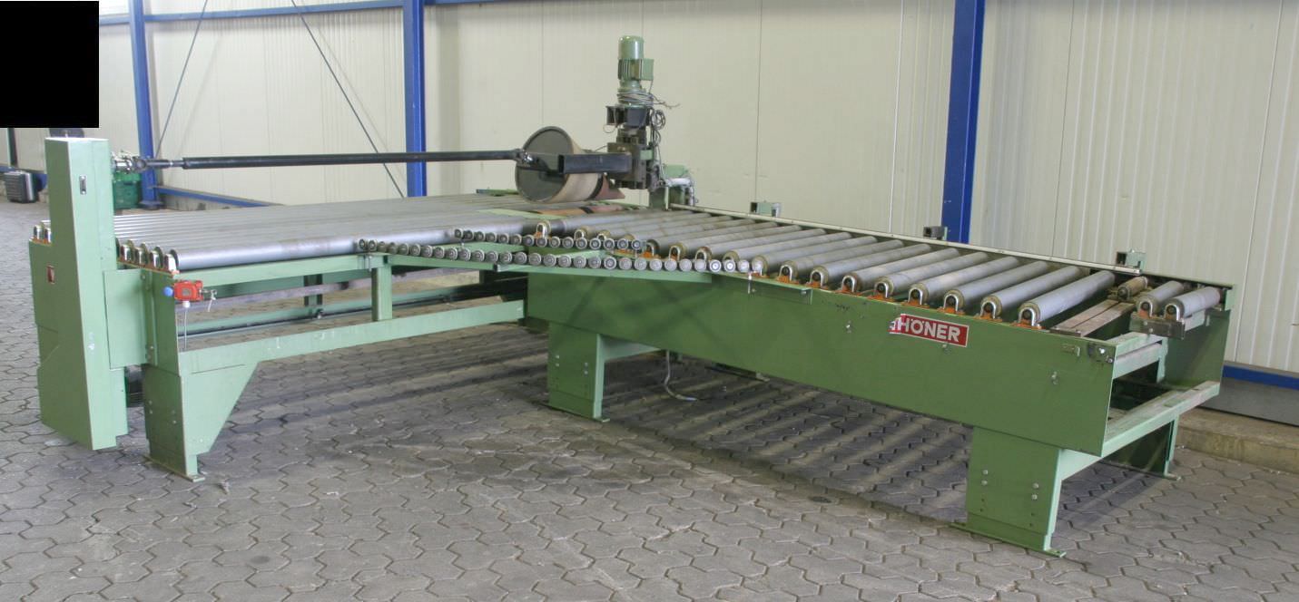 Zum Verkauf steht diese hydraulische Untertisch-Gehrungssäge mit zwei Förderbändern. Sägetischabmessungen L 800 mm x B 900 mm x H 800 mm. Förderband hinter der Säge 1500 x 700 mm, Förderband vor der Säge 2500 x 700 mm Abstand vom Bandanfang bis zur Säge 3300 mm, Sägeblattdurchmesser 500 mm, max. Schnitthöhe 120mm, Motor ca. 5,5 kW. Die Säge wurde komplett repariert.