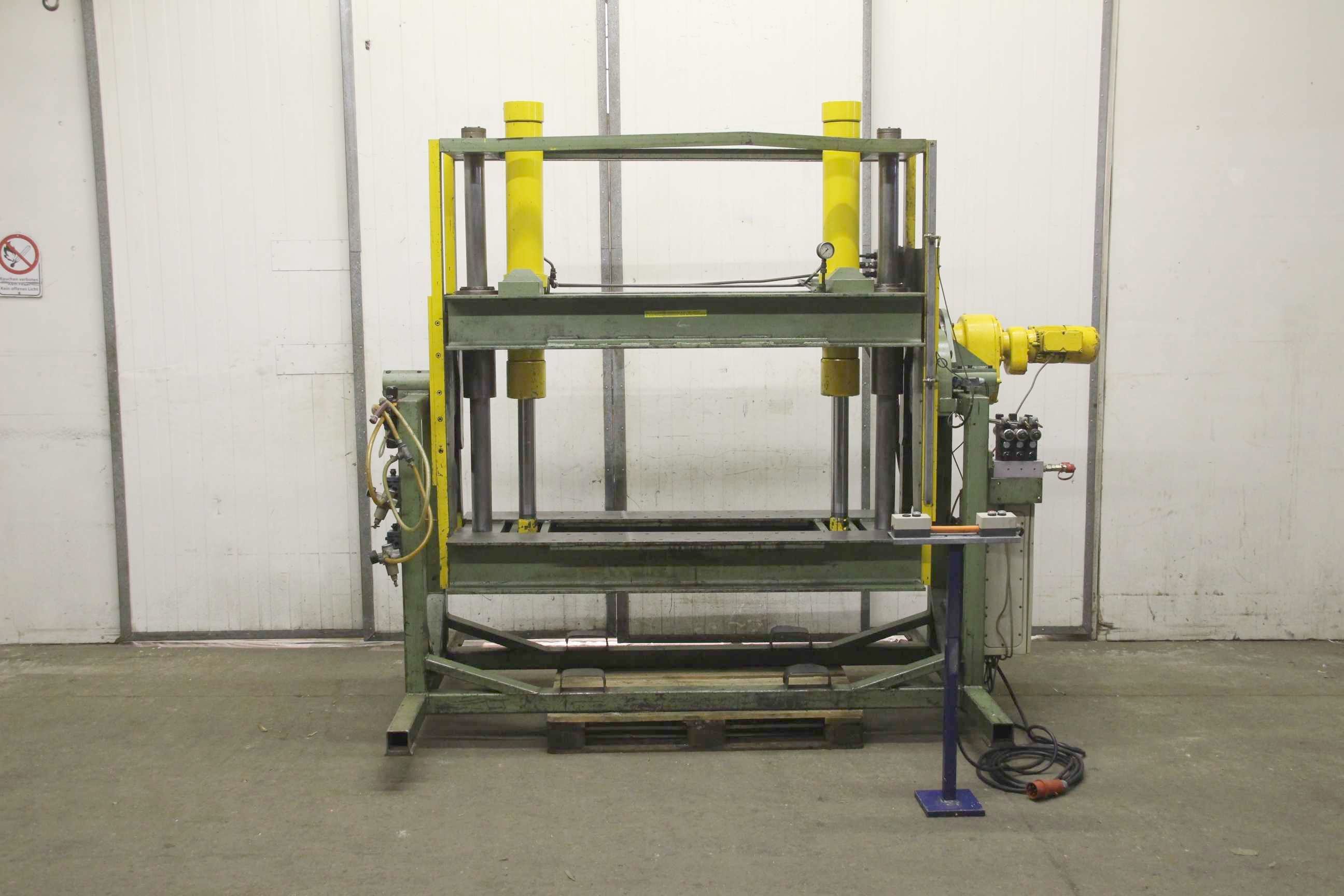 Wendeeinrichtung, Wendestation, Wendetisch, Drehstation, Drehtisch, Hydraulikpresse, Werkstattpresse, Ölhydraulische Presse, Werkstatt Hydraulikpresse -ohne: Hydraulikaggregat (kann gegen Aufpreis geliefert werden) -Wendestation zur: Drehung von Werkstücken -Innen Breite: 1075 mm -Innen Höhe: 720 mm -Transport Abmessungen: 2840/1600/H2300 mm -Gewicht: 969 kg