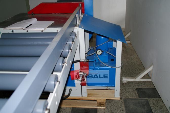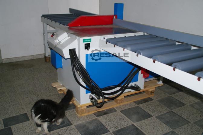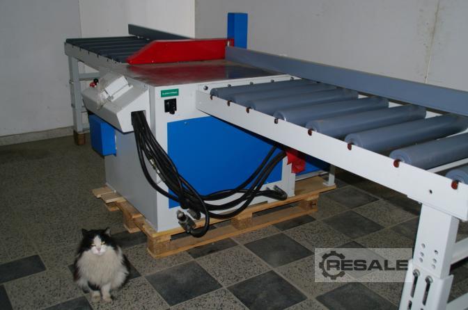 Zum Verkauf steht diese hydraulische Untertisch-Gehrungssäge mit zwei Förderbändern. Sägetischabmessungen L 800 mm x B 900 mm x H 800 mm. Förderband hinter der Säge 1500 x 700 mm, Förderband vor der Säge 2500 x 700 mm Abstand vom Bandanfang bis zur Säge 3300 mm, Sägeblattdurchmesser 500 mm, max. Schnitthöhe 120mm, Motor ca. 5,5 kW. Die Säge wurde komplett repariert.