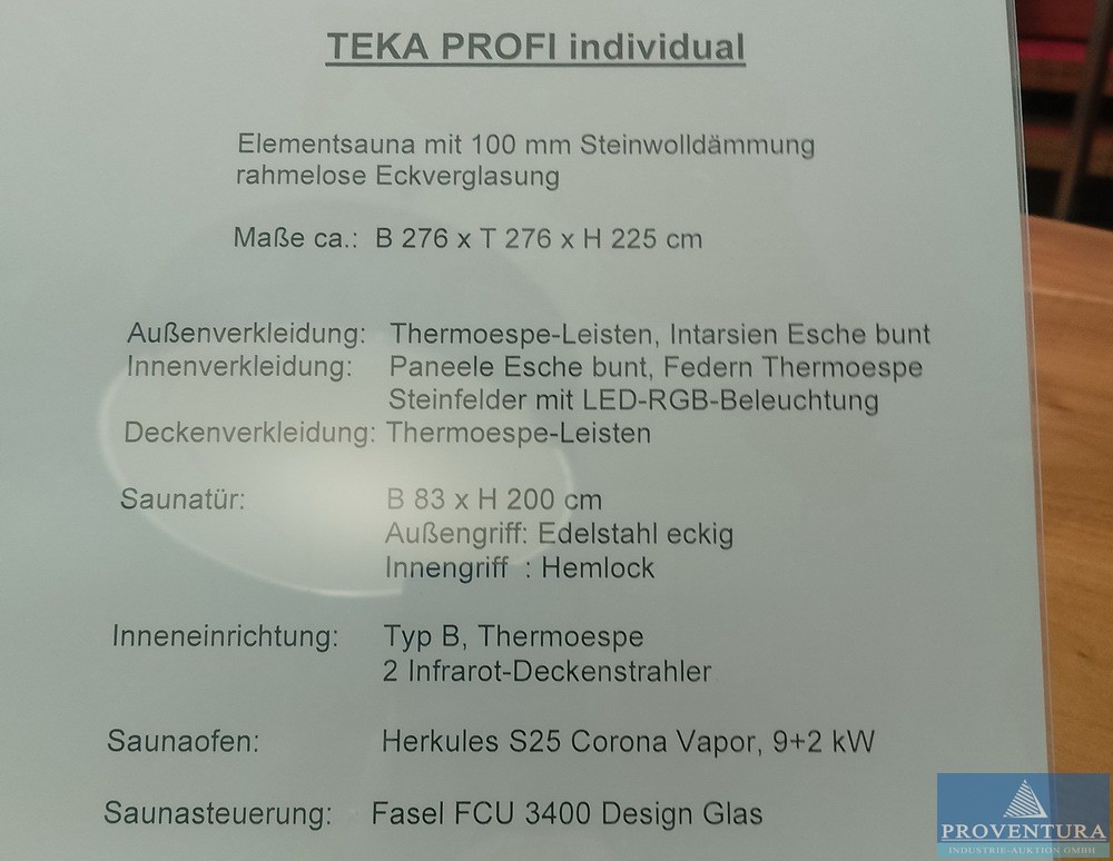 Maschinentyp: Ecksauna TEKA ca. 276x225x276t cm