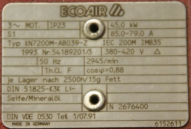 Maschinentyp: Elektromotor 45 kW 2945 U/min