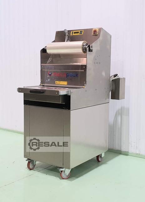 Gebrauchte JPACK TSS125. Halbautomatischer Traysealer des Herstellers JPACK (MECAPACK), Modell TSS125, vorbereitet für Verpackungen mit Schutzatmosphäre, mit Vakuum oder nur Heißsiegeln. Automatischer Traysealer, arbeitet mit Zyklen von 3 Trays, 5 Zyklen pro Minute mit Heißsiegelung mit Vakuum und Gas. Tray-Zuführung durch manuellen Wagen. Ausgabe der Maschine über den gleichen Eingangswagen. Die Heißsiegelmaschine führt einen Schweißprozess von einem Thermoplast auf einen anderen Thermoplast oder ein anderes kompatibles Material unter Verwendung von Hitze und Druck durch. Es wird verwendet, um eine Schutzatmosphäre herzustellen, indem Sauerstoff aus dem Inneren des Behälters extrahiert und durch ein Inertgas ersetzt wird, oder es führt nur die Dichtungswirkung aus und kann auch mit Vakuum verschlossen werden. Die Maschine ist bereit zum Anschließen und Arbeit ...