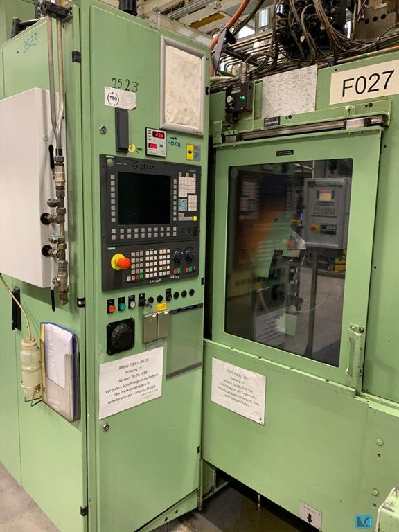 Eine CNC-Vertikaldrehmaschine EMAG steht zur Verfügung. Futterdurchmesser: 250mm, Umlaufdurchmesser: 260mm, Verfahrweg X/Z: 570mm/200mm, Eilgang X/Z: 60m/30m/min, Vorschubkraft X/Z: 5kN, Kugelrollspindeldurchmesser X/Z: 40mm, Spindellagerungsdurchmesser vorne: 110mm, Drehzahl: 4500U/min, Leistung: 18/28kW, Schaftdurchmesser: 40mm, Leistung angetriebener Werkzeuge: 12kW, Drehzahl: 6000U/min. Maschinendimensionen X/Y/Z: ca. 2700mm/2100mm/2400mm, Gewicht: ca. 7000kg, Einschaltzeit: 50416h, Automatikzeit: 9016h. Dokumentation vorhanden. Eine Besichtigung vor Ort ist möglich.