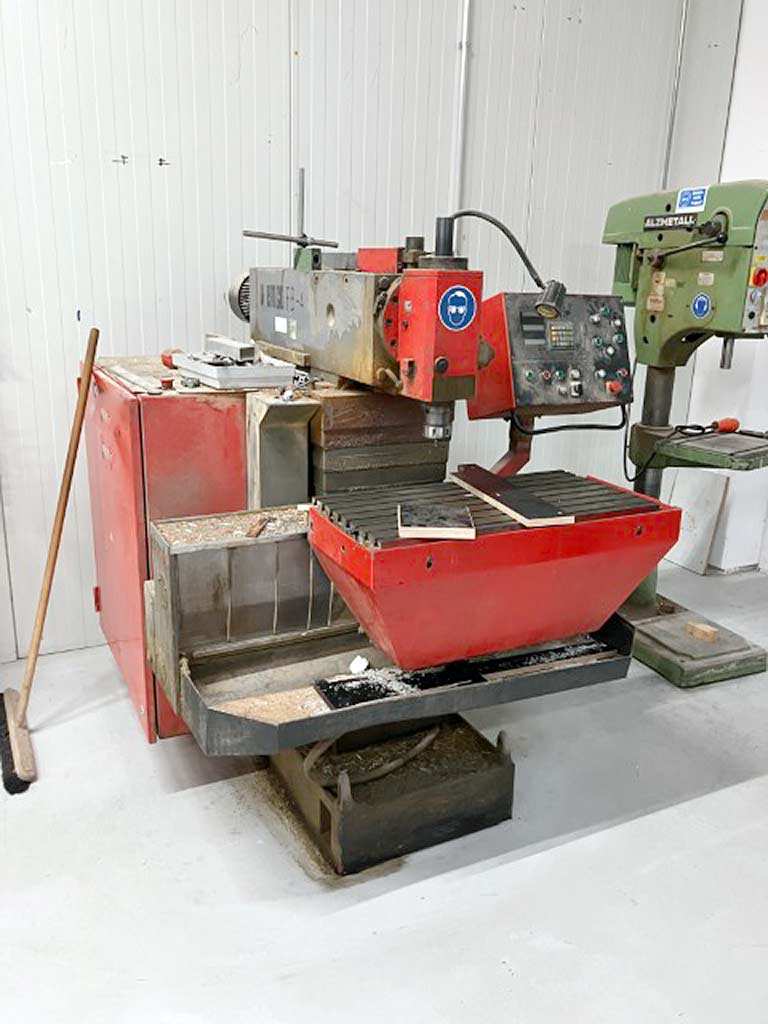Eine CNC-Universal-Werkzeugfräsmaschine Emco steht zur Verfügung. Verfahrweg X/Y/Z: 450mm/300mm/350mm, Tischdimensionen X/Y: 800mm/400mm, Drehzahl: 2500U/min, Werkzeugaufnahme: SK40, Pinolenhub: 100mm, Fräskopfschwenkung: +/-90°, Vorschub: 400mm/min, Eilgang: 4m/min, Maschinendimensionen X/Y/Z: ca. 1500mm/1500mm/1700mm, Gewicht: ca. 1500kg. Eine Besichtigung vor Ort ist möglich.