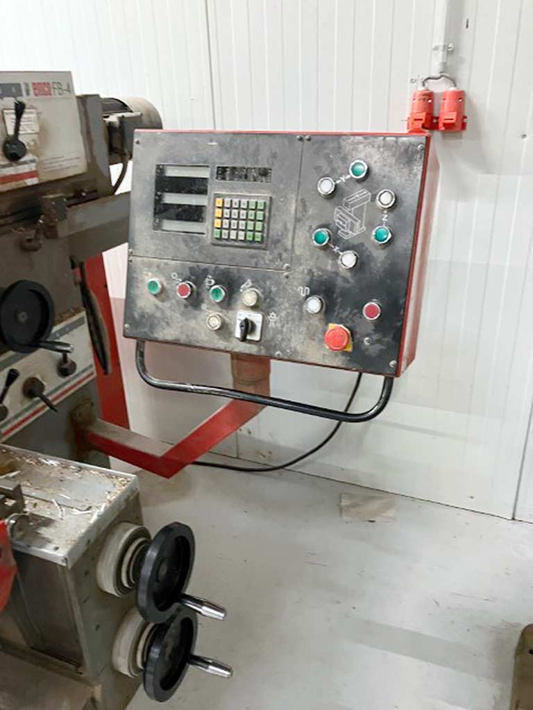 x-Weg: 450 mm y-Weg: 300 mm z-Weg: 350 mm Gesamtleistungsbedarf: kW Maschinengewicht ca.: t Raumbedarf ca.: m 3-Achsen Digitalanzeige Horizontal- und Vertikalfrässpindel Pinole Technische Daten / technical details: Längsweg X / X-travel longitudinal 450 mm Querweg Y / Y-travel cross 300 mm Senkrechtweg Z / Z-travel vertical 350 mm Tischgröße / table size 800x400 mm Spindelaufnahme / spindle taper SK40 Drehzahlbereich / spindle speed 50-2500 UpM /rpm Vorschubbereich / feed range 8-400 mm/min. Antriebsleistung / power capacity 3,2 kW Gewicht der Maschine / weight 1500 kg Technische Daten, Zubehör und Beschreibung der Maschine sind unverbindlich - Technical data, accessories and description of the machine are not binding. Die Daten fü, dieses Inserat wurden erstellt mit ModulMWS - die Maschinenverwaltung von LogoTech oHG.