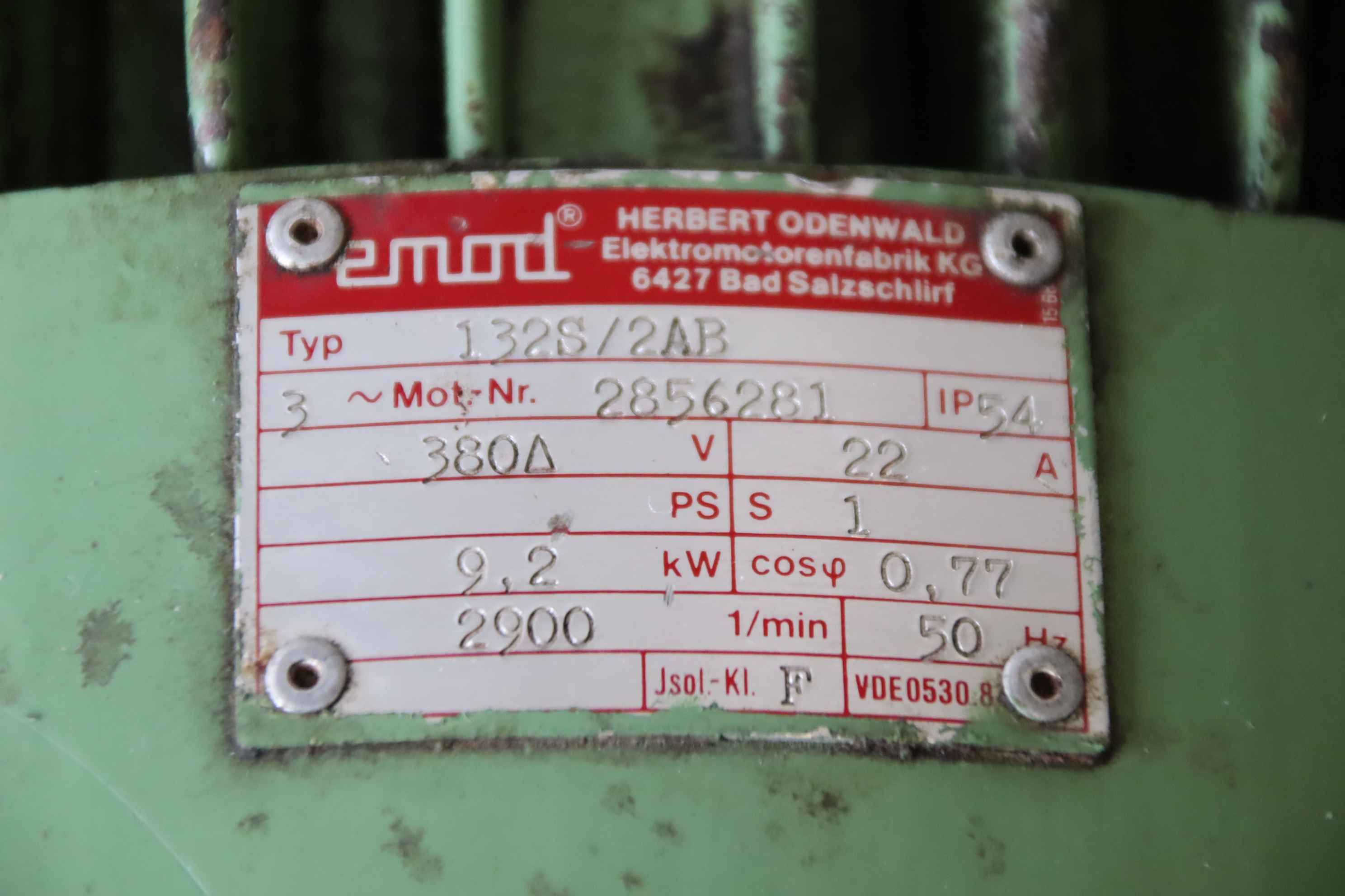 Maschinentyp: Elektromotor 9,2 kW 2900 U/min