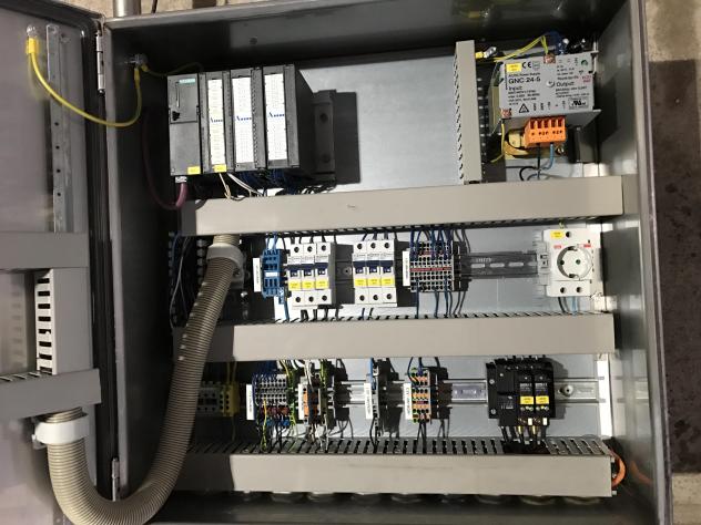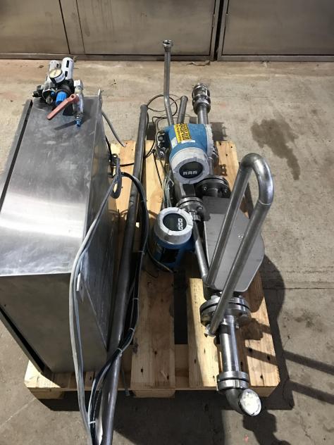 Dosierung mit Endress und Hauser Massedurchflussmesser, bestehend aus einem Schaltschrank (mit Siemens SPS und Touchpanel zur Dosierungssteuerung sowie Pneumatik Ventilinsel) und zwei Endress und Hauser Massedurchflussmessern.