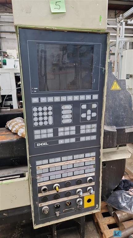 Hersteller/Manufacturer: Engel Typ/Type: ES 330/75 HL - V Baujahr/Year: 1999 Steuerung/Controller: CC 100 Schliesskraft/Clamping Force: 750 kN Schliessart/Clamping Type: Hydraulisch/Hydraulic Holmabstand/Dist.Betw.Tiebars: - Plattengroesse/Platen Size: 660 mm x 560 mm WZ Einbauhoehe/Mould hight: min 200 mm Oeffnungsweg/opening stroke: 450 mm Plattenabstand max/Max. Open Daylight: 650 mm Schnecke/Screw size: 40 mm Hubvolumen/Shot volume: 201 ccm spez. Spritzdr./injection pressure: 1600/2180 bar Allgemein/General Motor/Motor Power: 15 kW Heizung/Heating Power: 9,2 kW Abmessungen/Dimensions: 3,8 m x 1,3 m x 2 m Gewicht/Weight: 4900 kg Bildschirmtext/Language: Deutsch/German Zusätzliche Ausrüstung/Additional equipment Kernzug / Core Pulling: x1 Roboterschnittstelle / Robot interface
