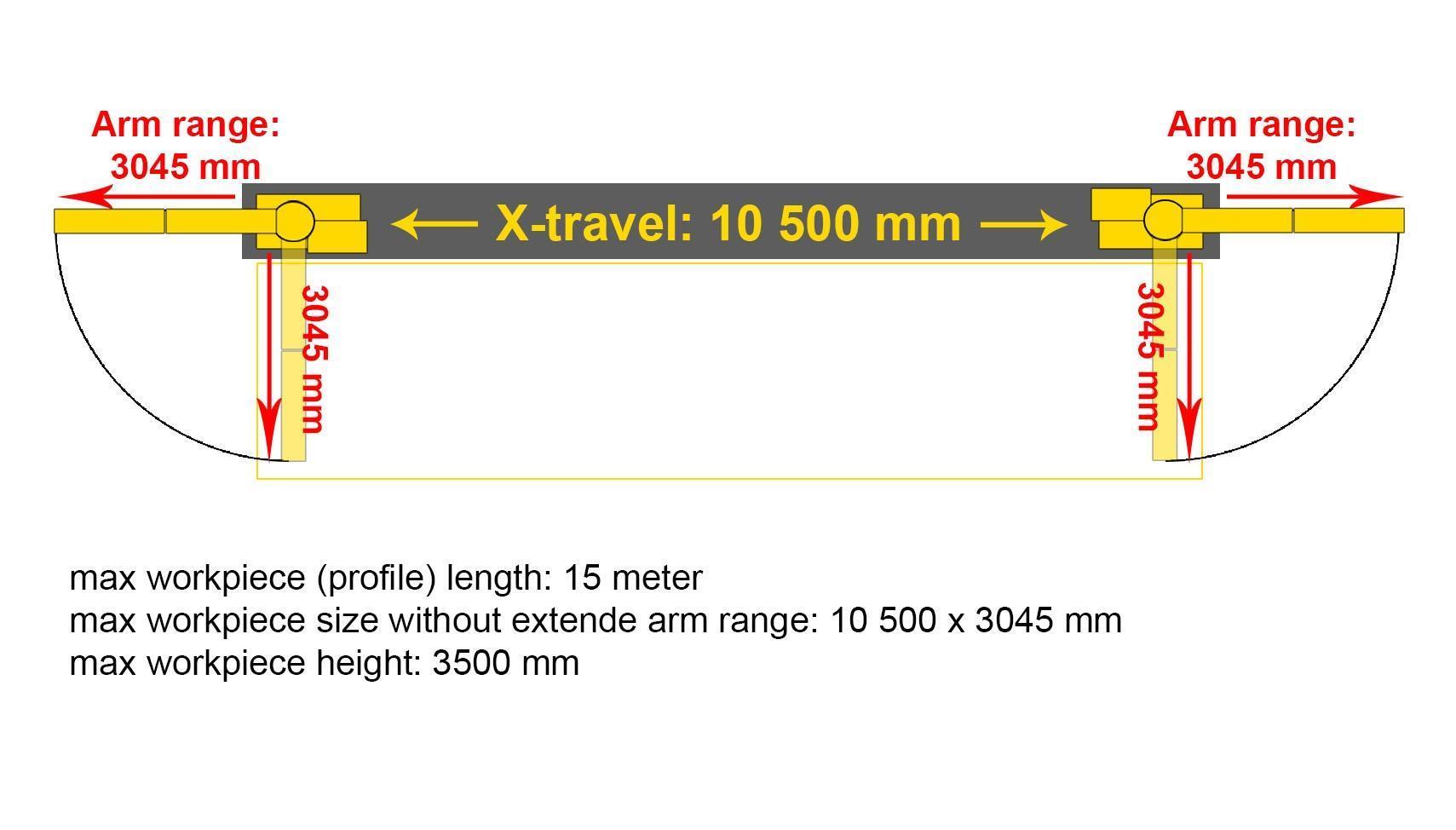 meter gt; Maximale werkstukafmetingen zonder uitgeschoven arm: 10.500