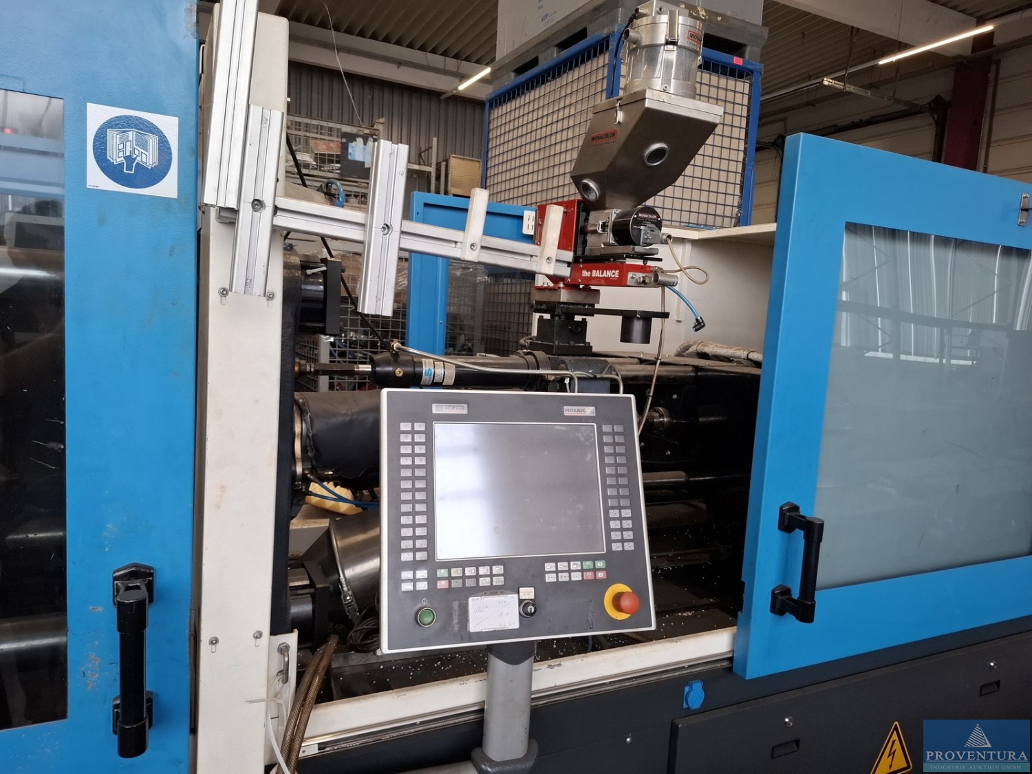 Hersteller: Arburg Typ: 420 C 1000 - 350 Baujahr: 1999 Steuerung: Selogica Schliessart: Hydraulisch Schliesskraft: 1000 kN Holmabstand: 420 mm x 420 mm Plattengröße: 570 mm x 570 mm Werkzeugeinbauhöhe: min 250 mm Öffnungsweg: 500 mm Plattenabstand max.: 750 mm Schnecke: 45 mm Hubvolumen: 230 ccm / 194 gram PS Spritzdruck: 1670 bar Allgemein Motor: 22 kW Heizung: 8,8 kW Abmessungen: 4,3 m x 1,7 m x 1,8 m Gewicht: 3430 kg Bildschirmtext: Deutsch