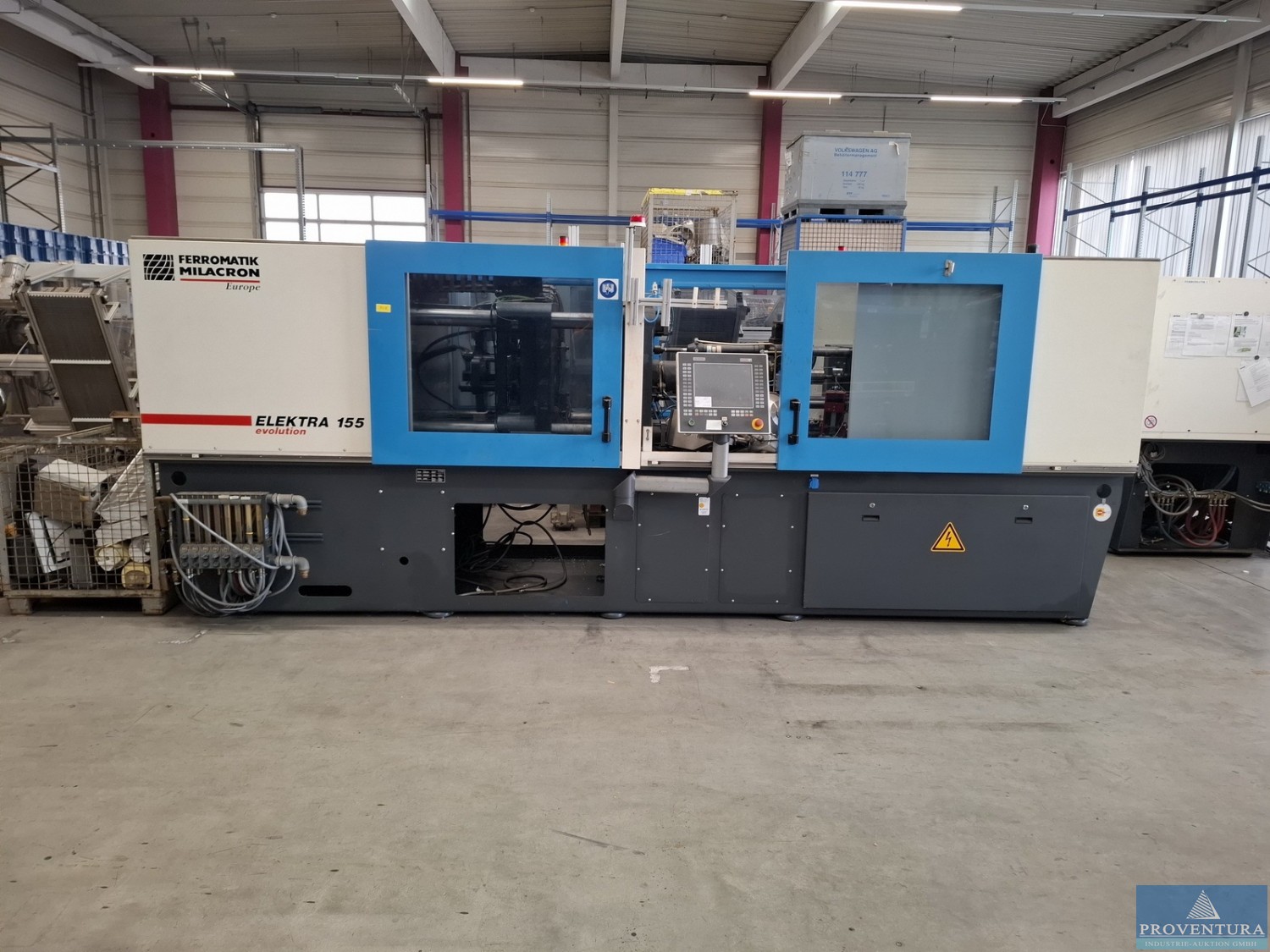 Spritzgiessmaschine FERROMATIK MILACRON EUROPE Elektra EE 155 Evolution Bj. 2007 65.542 Bh (19.03.25, 25.03.26), Masch.-Nr. 427099, Schließkraft 1.550 kN, internationale Größe 1550H-300, Einspritzdruck 1.943 bar, Hubvolumen 154 cm³, 400 V/50 Hz, Motor 19,7 kW, Heizung 11,2 kW, Maschine 7,4 t, intern FERRO1, CNC-Steuerung MOSAIK, nach Kauf noch nicht angeschlossen