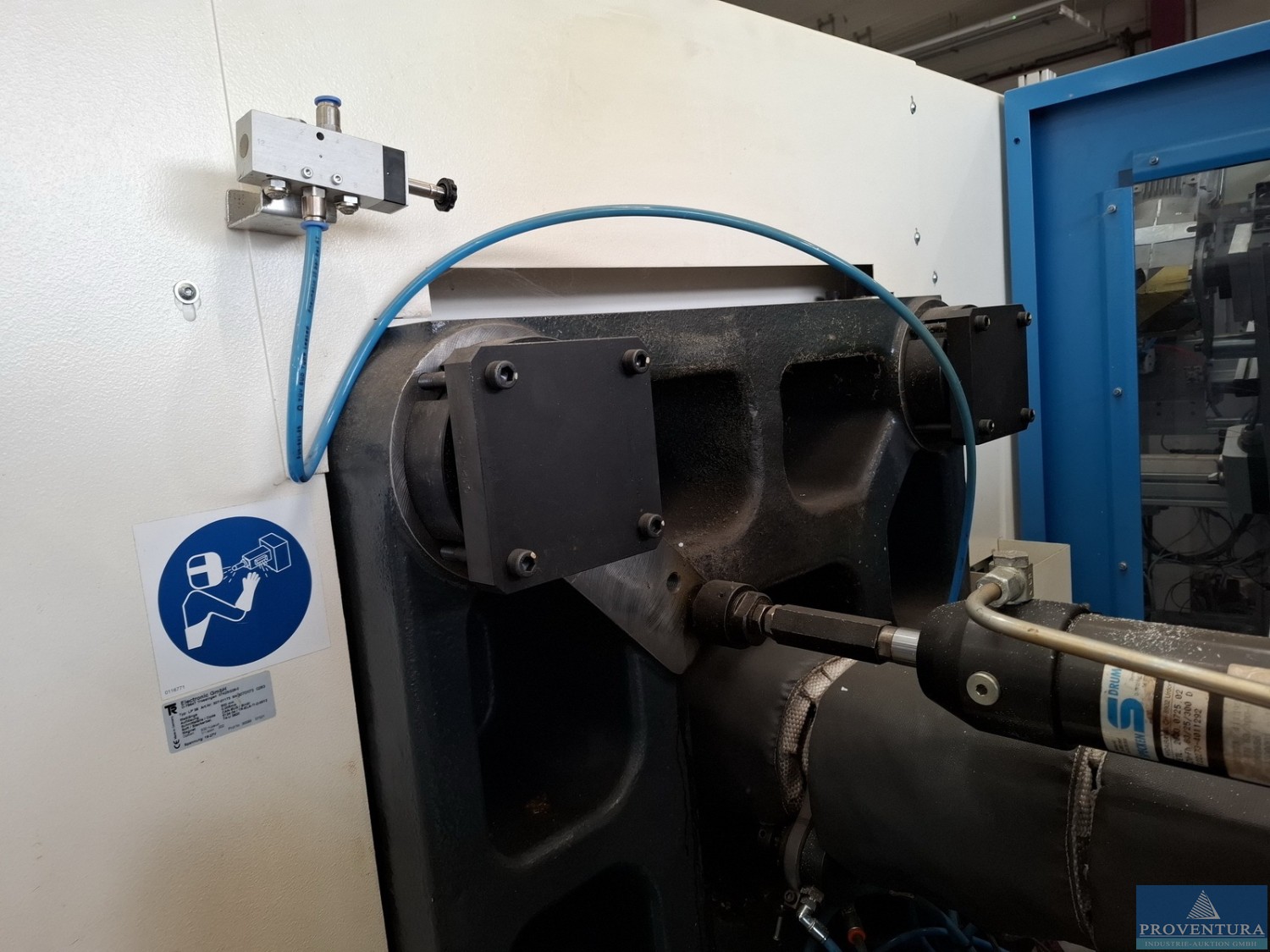 Eine Spritzgießmaschine Ferromatik Milacron ohne Zusatz- und Peripheriegeräte steht zur Verfügung. Schließkraft: 1000kN, Einspritzdruck: 2000bar, Hubvolumen: 254cm³, Heizleistung: 14,8kW, Holmabstand: 508mm, Maschinengewicht: ca. 6750kg, Betriebsstunden: ca. 33649h. Eine Besichtigung vor Ort ist möglich.