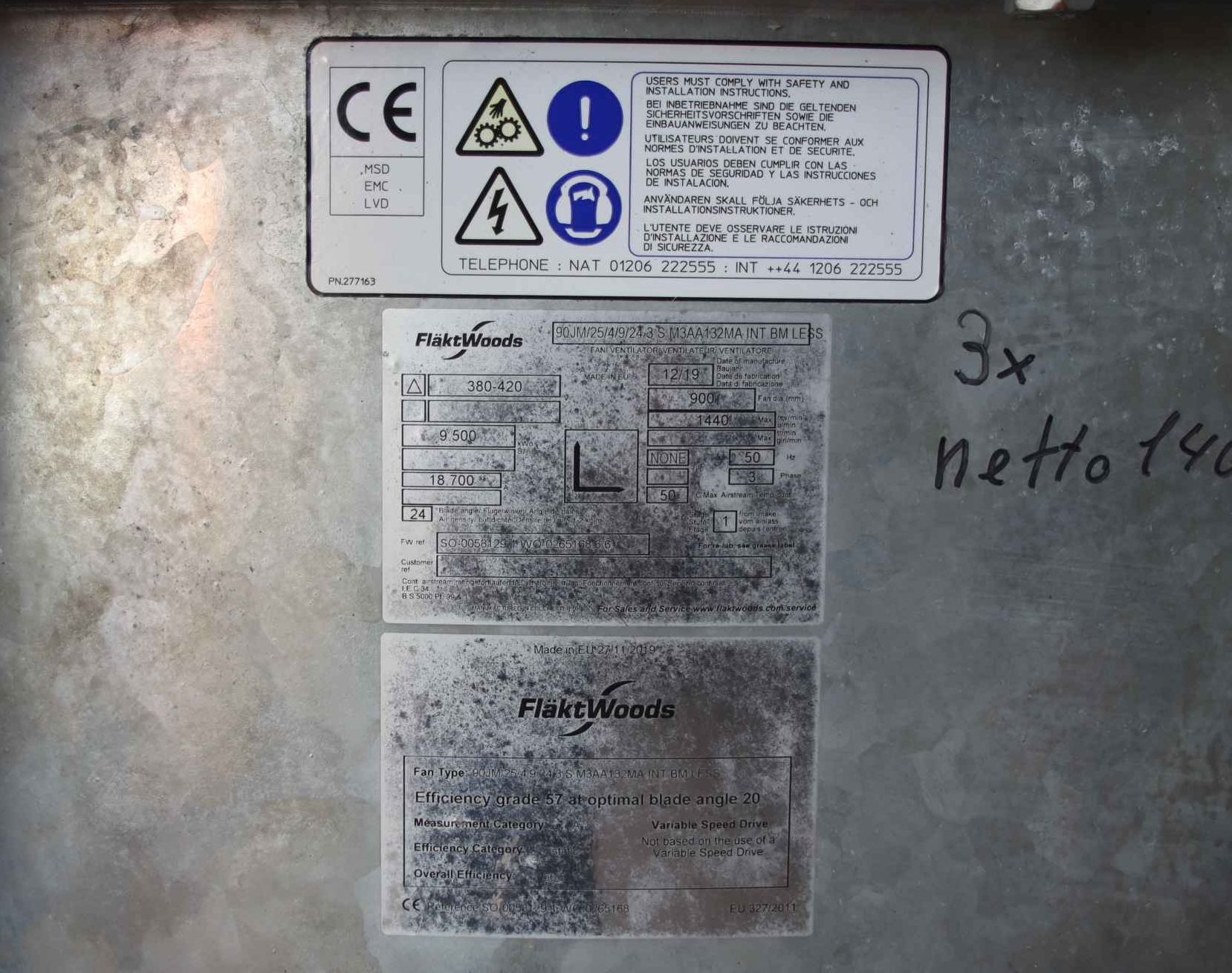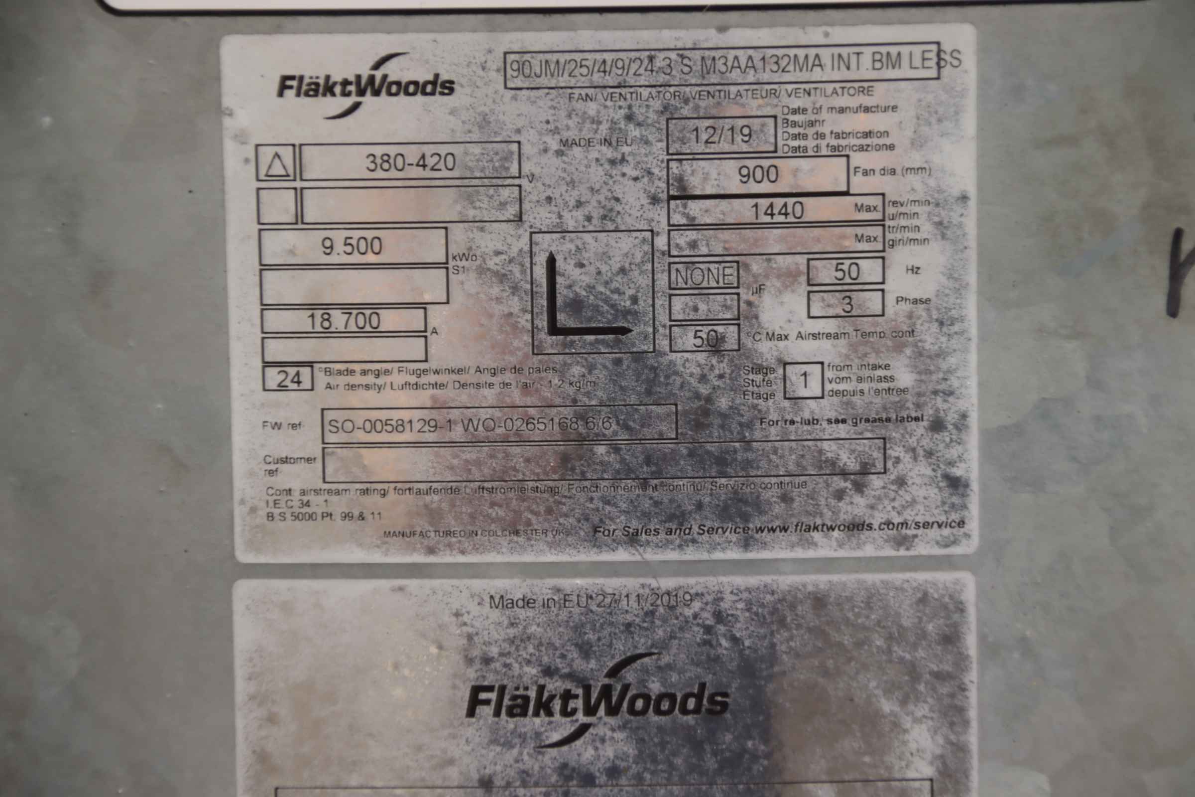 Axial Ventilator 7,5 kW 1462 U/min FLäKT WOODS 90JM/25/4/9/24 3 S M3AA132MA INT BMLESS