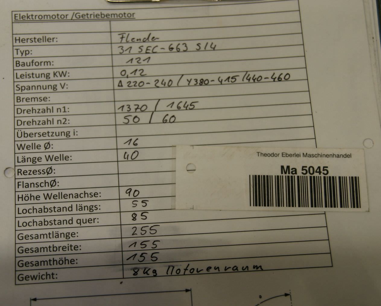 Maschinentyp: Getriebemotor 0,12 kW 50 U/min