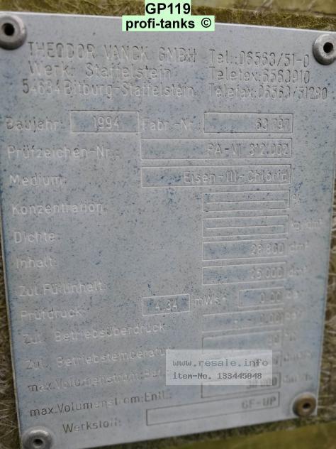P119 - gebrauchter ca. 28,8 m³ / 28.800 Liter GF-UP Tank /