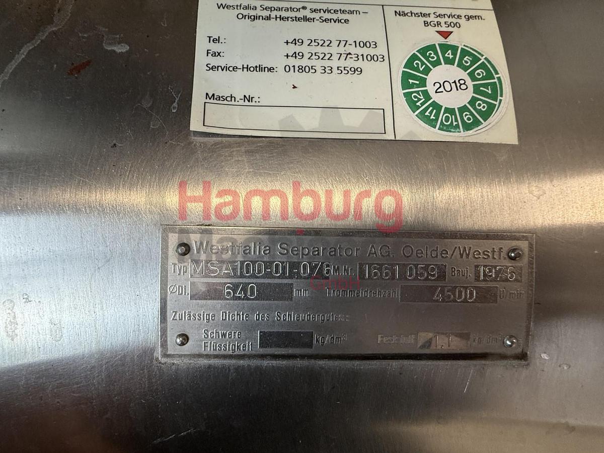 (außen). Milchzentrifuge / Schaumkelle: GEA Westfalia, MSA