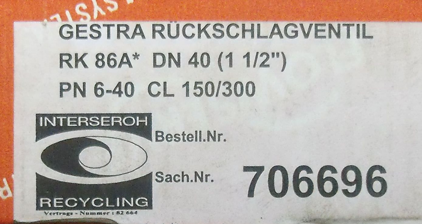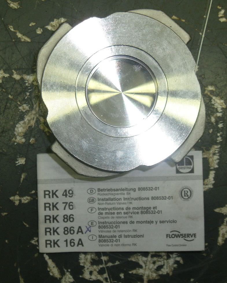 Rückschlagventil, Rückschlagklappe -Typ: RK 86A -Anschluß: DN40 -Nenndruck: PN40 -Gesamtlänge: 28 mm -Material: Edelstahl -Anzahl: 2x Ventile vorhanden -Preis: pro Stück -Gewicht: 0,75 kg/Stück
