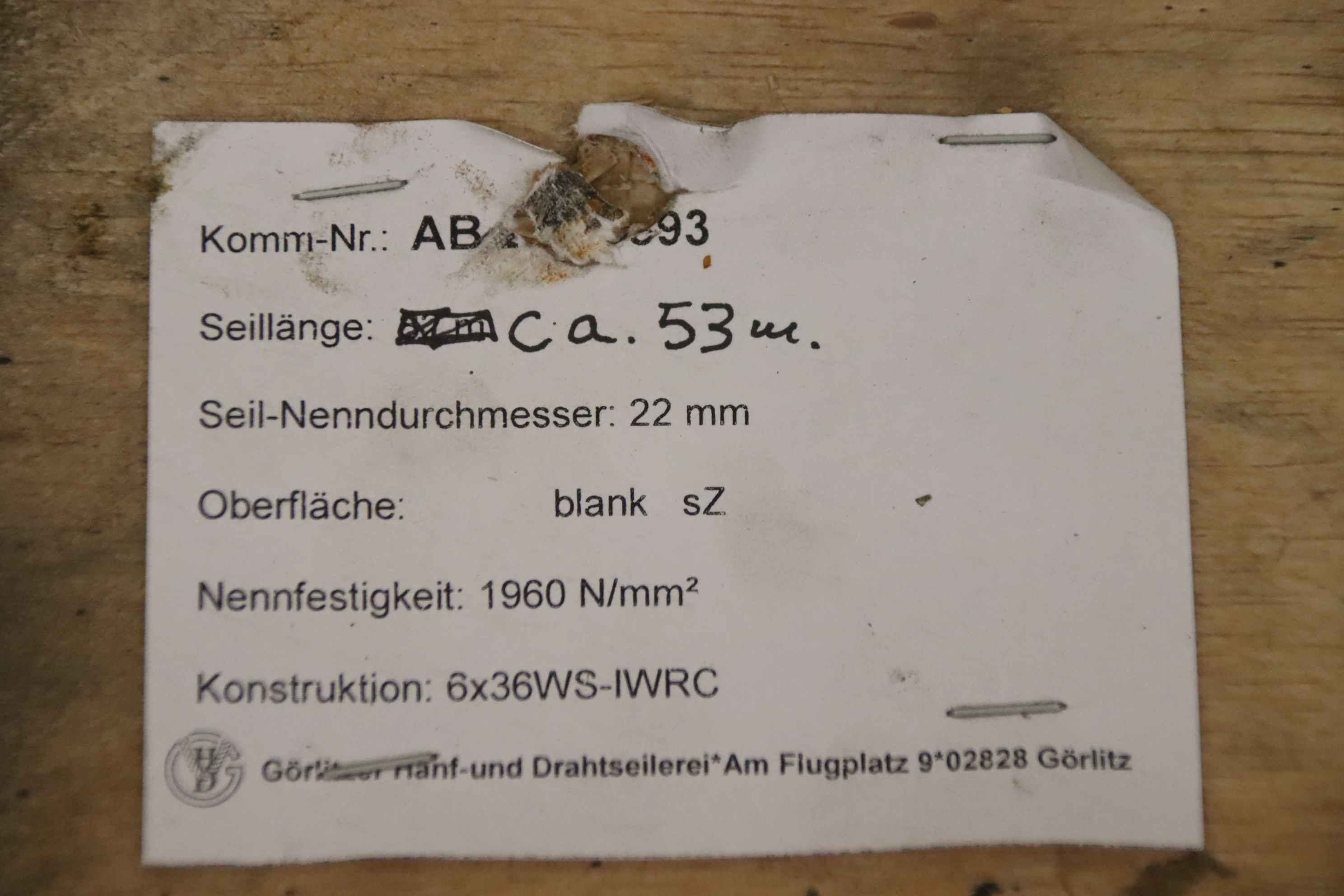 -Hersteller: GHD Görlitzer Hanf & Drahtseilerei, Krantseil Windenseil Ø 22 mm