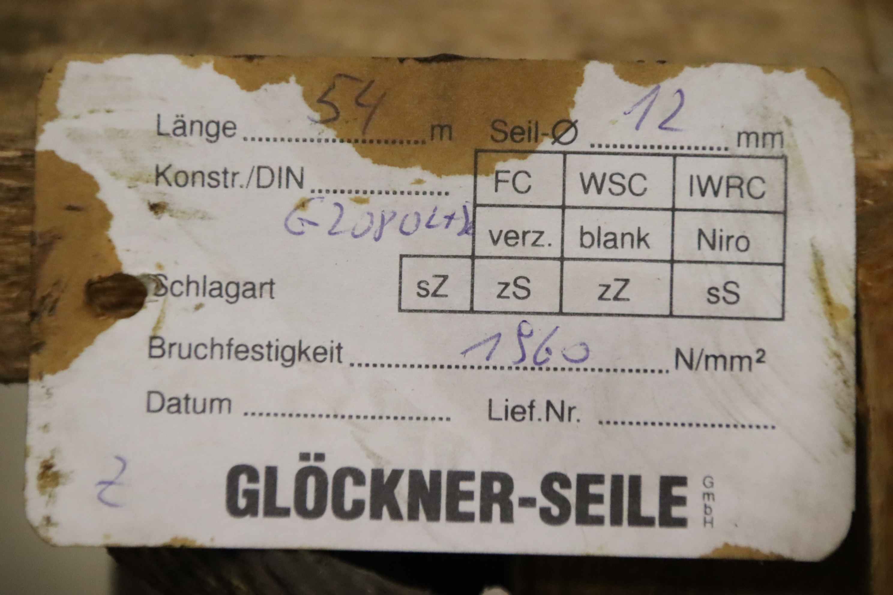 Maschinentyp: Kranseil Ø 12 mm 54 m