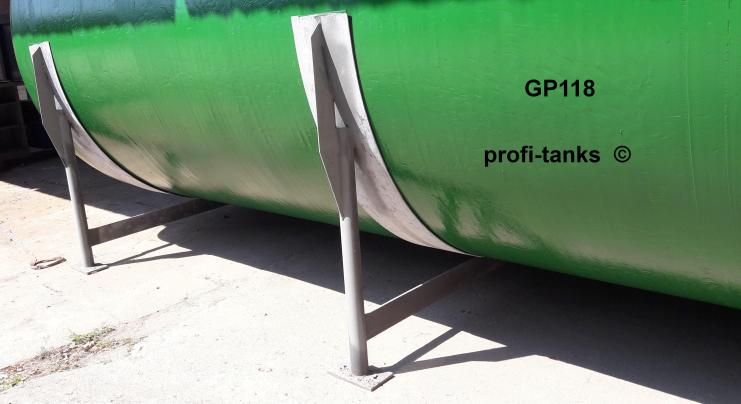 GFK-Tank, oberirdisch, liegend, auf Stahlsockeln, guter Zustand.