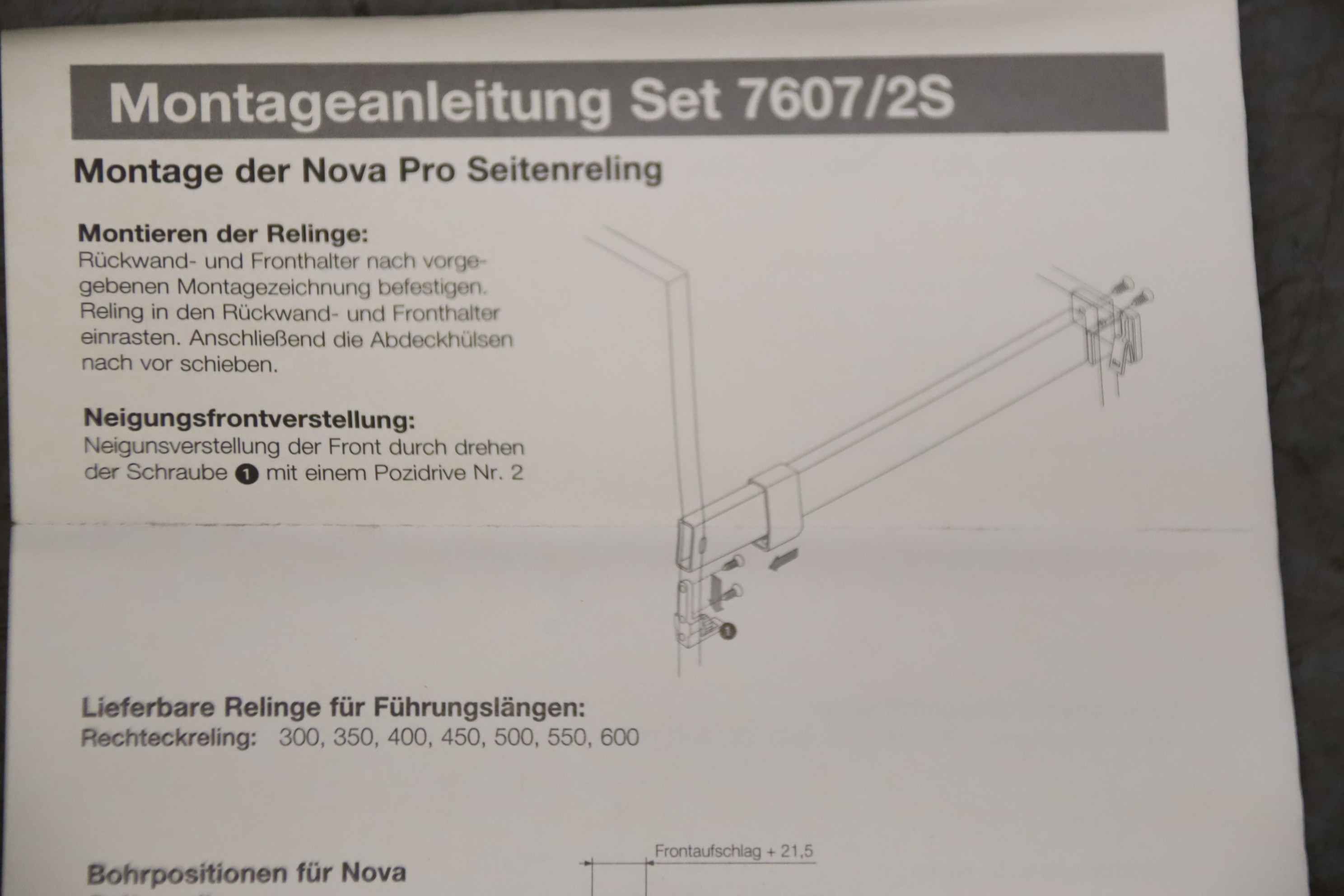 Teleskopschienen, Auszugschienen, Schwerlastauszug, Seitenreling, Frontauszug, Schubladen-Seitenreling, 2-Seitenrechteckreling