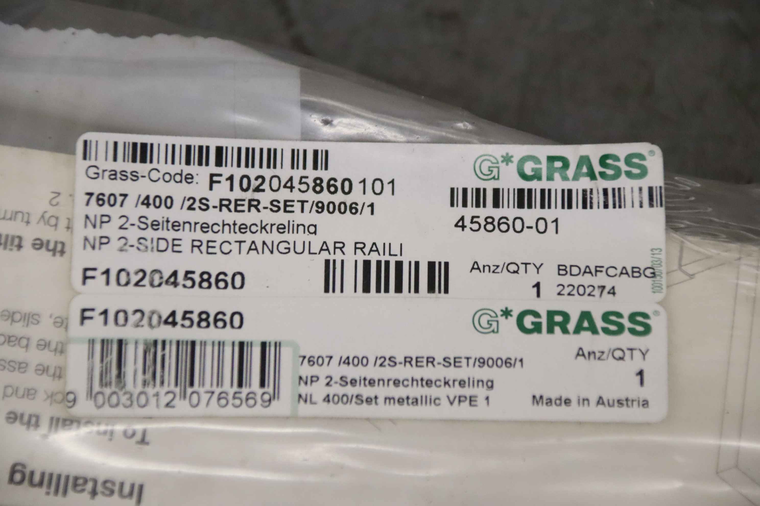 2-Seitenrechteckreling GRASS 7607/400/2S-RER-SET/9006/1