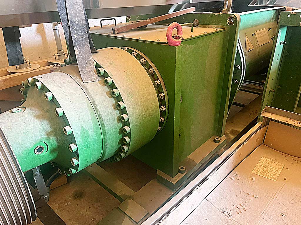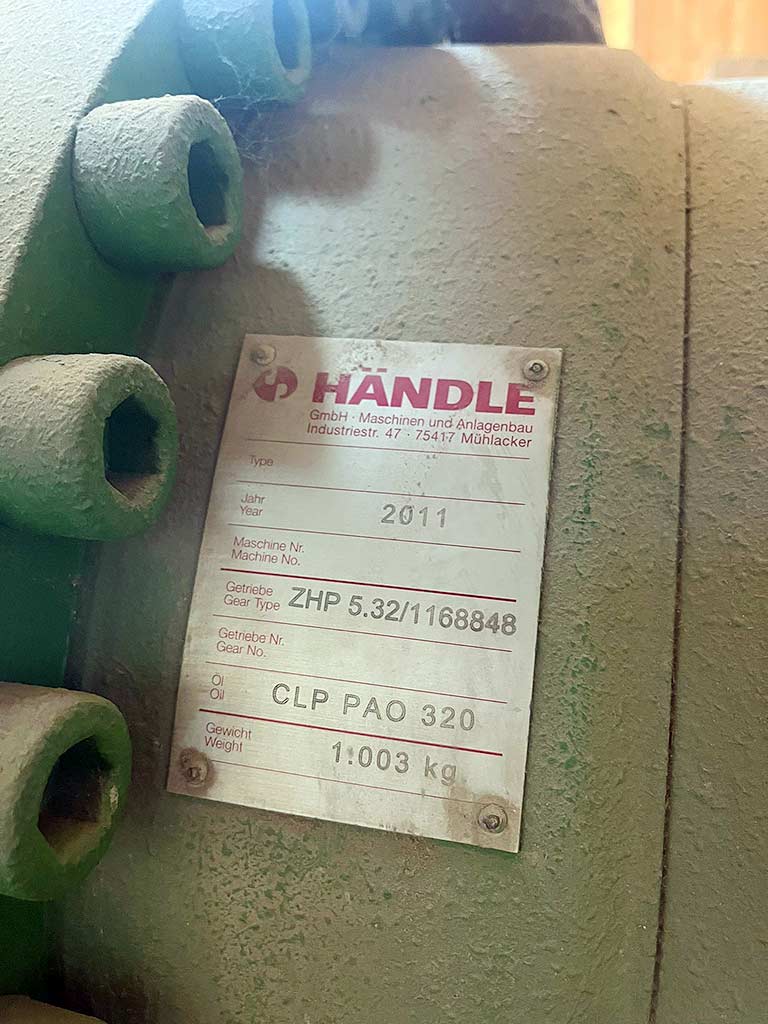 Ein im Jahr 2020 generalüberholter Doppelwellen-Siebfiltermischer Händle mit hydraulisch verschiebbarem Sieb steht zur Verfügung. Getriebe: ZHP 5.32/1168848, Ölsorte: CLP PAO 320, Getriebegewicht: ca. 1000kg, Mischtrogbreite: 1000mm, Trog- und Zylinderlänge: 1150mm+850mm, Mischerwellen-Drehzahl: 12U-30U/min, theoretische Nassmaterial-Durchsatzleistung: ca. 39t-99t, theoretischer Kompaktmaterial-Volumendurchsatz: 22m³-56m³/h. Im Jahr 2020 wurden das Getriebe, die Mischerwellen und die Siebvorrichtung überholt. Inklusive Mischerschnecken und Siebe. Dokumentation vorhanden. Eine Besichtigung vor Ort ist möglich.