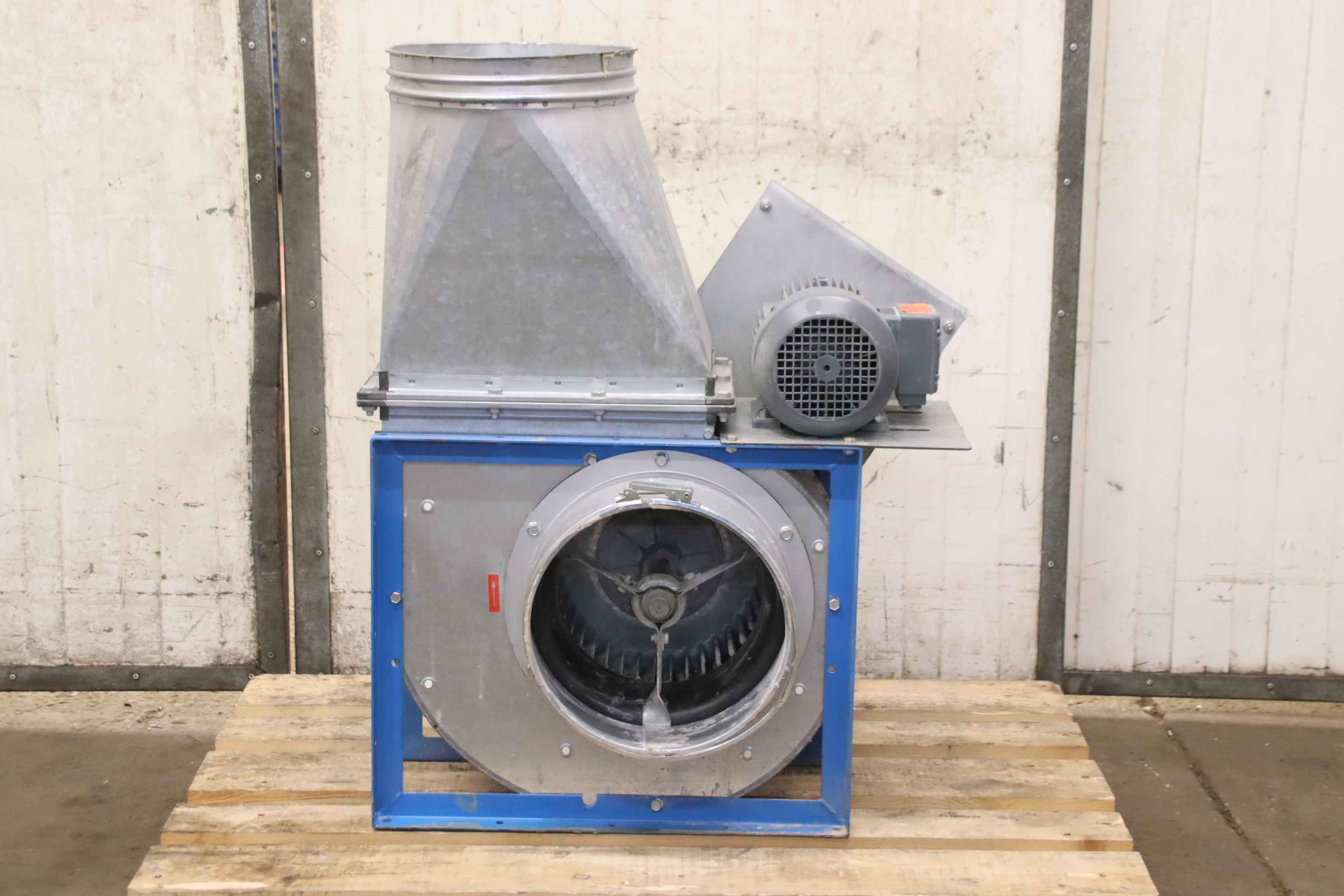 Radialventilator, Hochdruck-Radialventilator, Staubabsauggebläse, Abgas Absaugung, Schweissrauchabsugung, Absaugung, Absauggebläse, Ventilator, Druckgebläse, Vakuumgebläse, Lüftungsgebläse, Gebläse, Radialgebläse -Hersteller: Höcker, Radialventilator Absauggebläse -Typ: TRE 05-315 -Motorleistung: 1,1 kW / 2800 U/min -Volumenstrom: 2500 m³/h -Anschluss Eingang: Ø 300 mm -Anschluss Ausgang: Ø 300 mm -Lüfterrad: Ø 350 x 140 mm -Schutzklasse: IP 54 -Abmessungen: 750/440/H950 mm -Gewicht: 53 kg