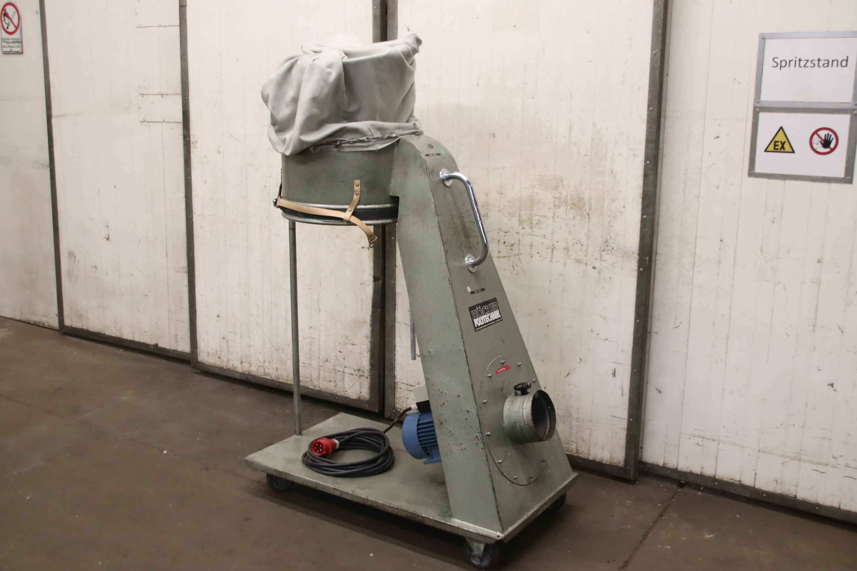 Eine mobile Absaug- und Filteranlage Höcker steht zur Verfügung. Filterklasse: H3, Motorleistung: 4kW, Saugstutzen: 200mm, Filterfläche: ca. 12m², max. Volumenstrom: 3400m³/h, max. Unterdruck: 2700Pa, Sammelbehältervolumen: 350l, Maschinendimensionen X/Y/Z: ca. 2000mm/1100mm/2000mm, Gewicht: ca. 420kg. Eine Besichtigung vor Ort ist möglich.