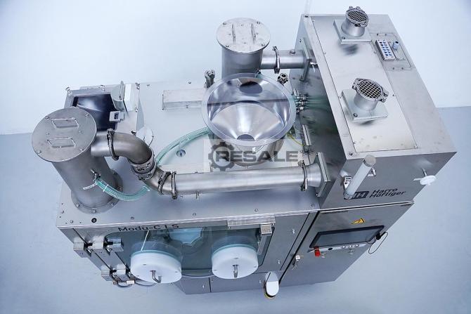 Automatische Kapselfüllmaschine für Dosierung von Flüssigkeiten in Hartgelatinekapseln. Inkl. Flüssigdosiergruppe und Zuführgruppe für Kapsel-in-Kapsel-Anwendungen. Anlage in Containment-Ausführung und ausgestattet mit Kapselformaten für Grösse 0 und 00. Steuerung: B&R APC 3100 Leistungen: Flüssigkeit in Kapseln: max. 14.760 Stück/h, Kapsel-in-Kapsel: max. 12.600 Stück/h.