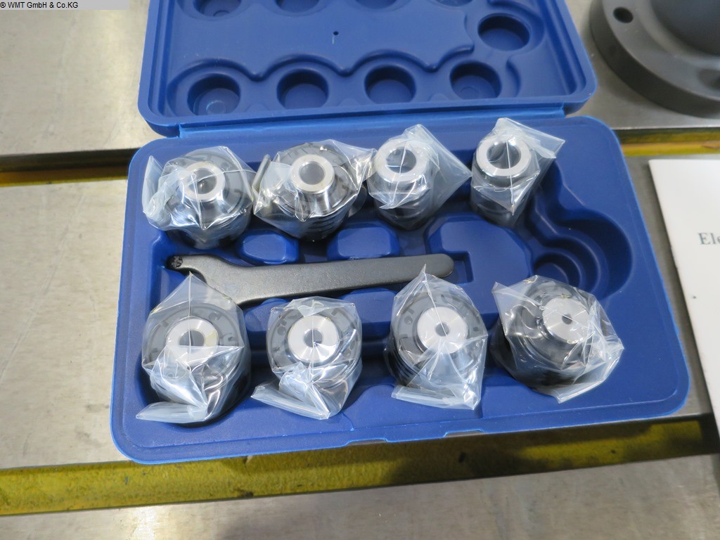 Gewindedurchmesser: M16 - M42 metrisch Drehzahl stufenlos: 50 - 200 U/min. Arbeitsbereich: max. 1300 mm Motorleistung: 1,2 kW Gewicht: 105 kg Abmessungen L x B x H: 0,85 x 0,85 x 0,3 mm Elektrische Gewindebohrmaschinen für M16 - M42 Gewinde, Winkel einstellbar. 8 stk. Schnellwechselfutter mit Rutschkupplung. Über Display einstellbar: variable Drehzahl, Einstellbare Tiefe, Materialauswahl, Wahl der Hauptdrehrichtung, Gewindeauswahl. Dokumentation in Englisch! Optional: Aufspanntisch mit Nuten Typ: FL-WB Die Daten fü, dieses Inserat wurden erstellt mit ModulMWS - die Maschinenverwaltung von LogoTech oHG.
