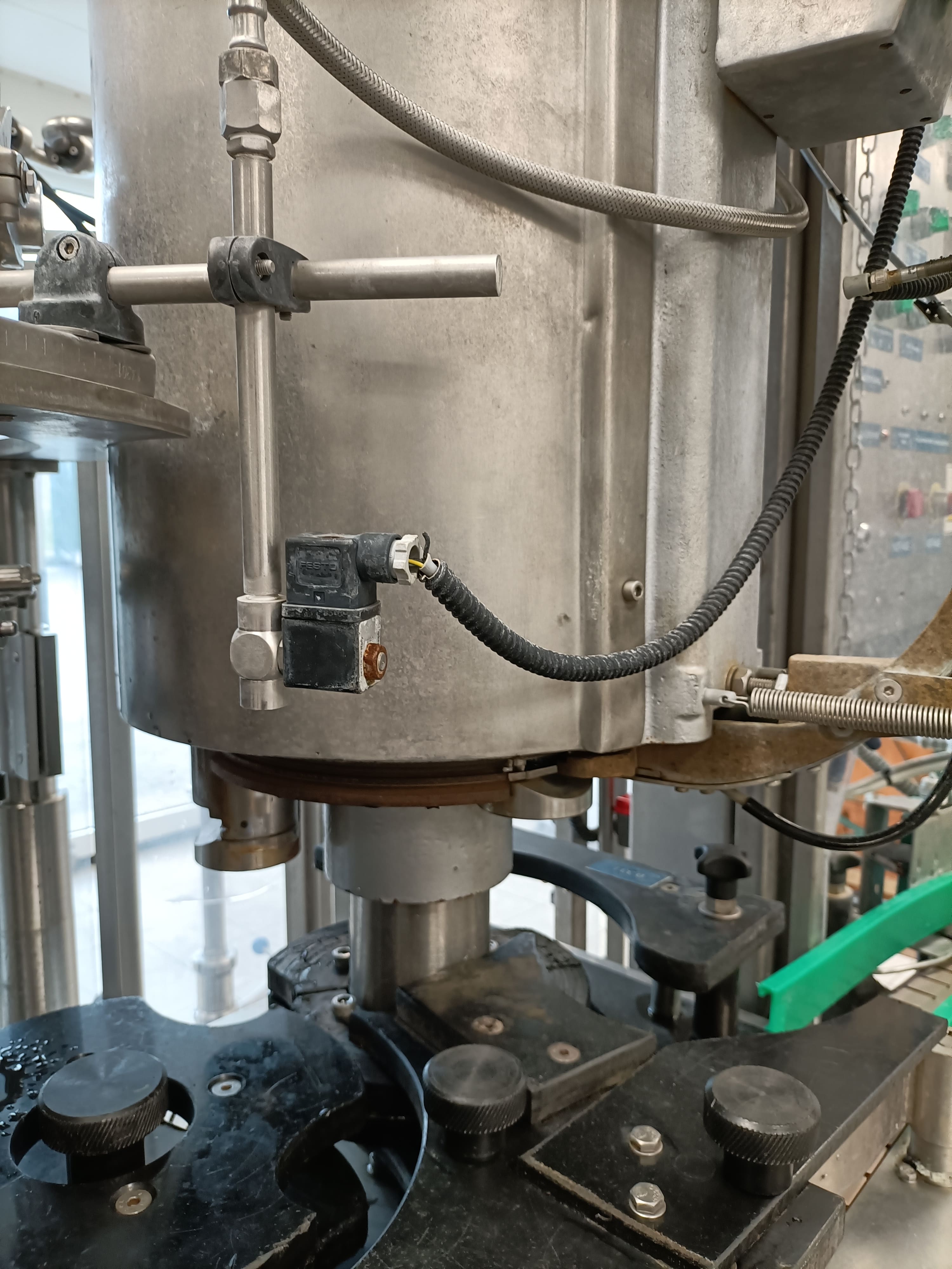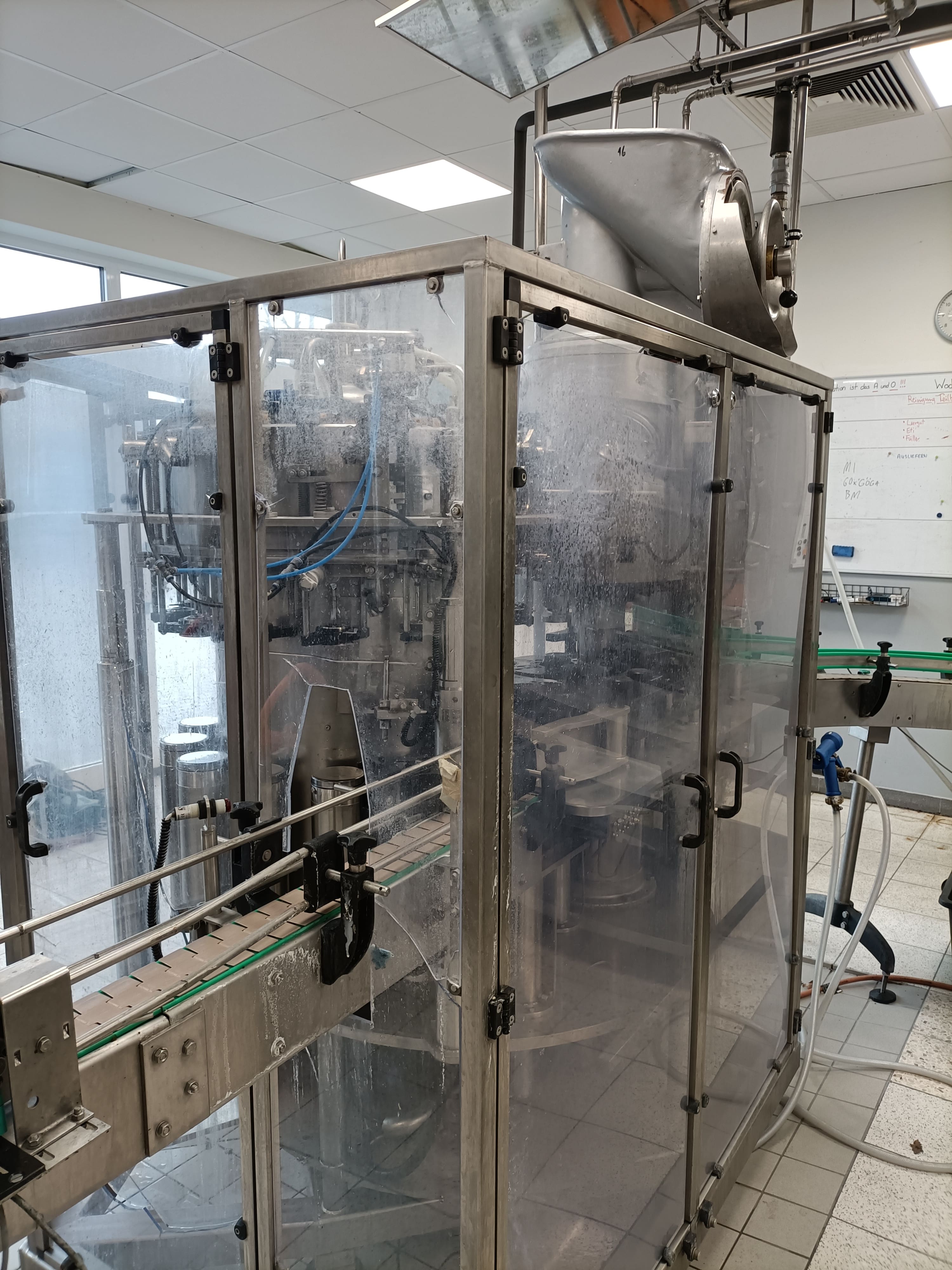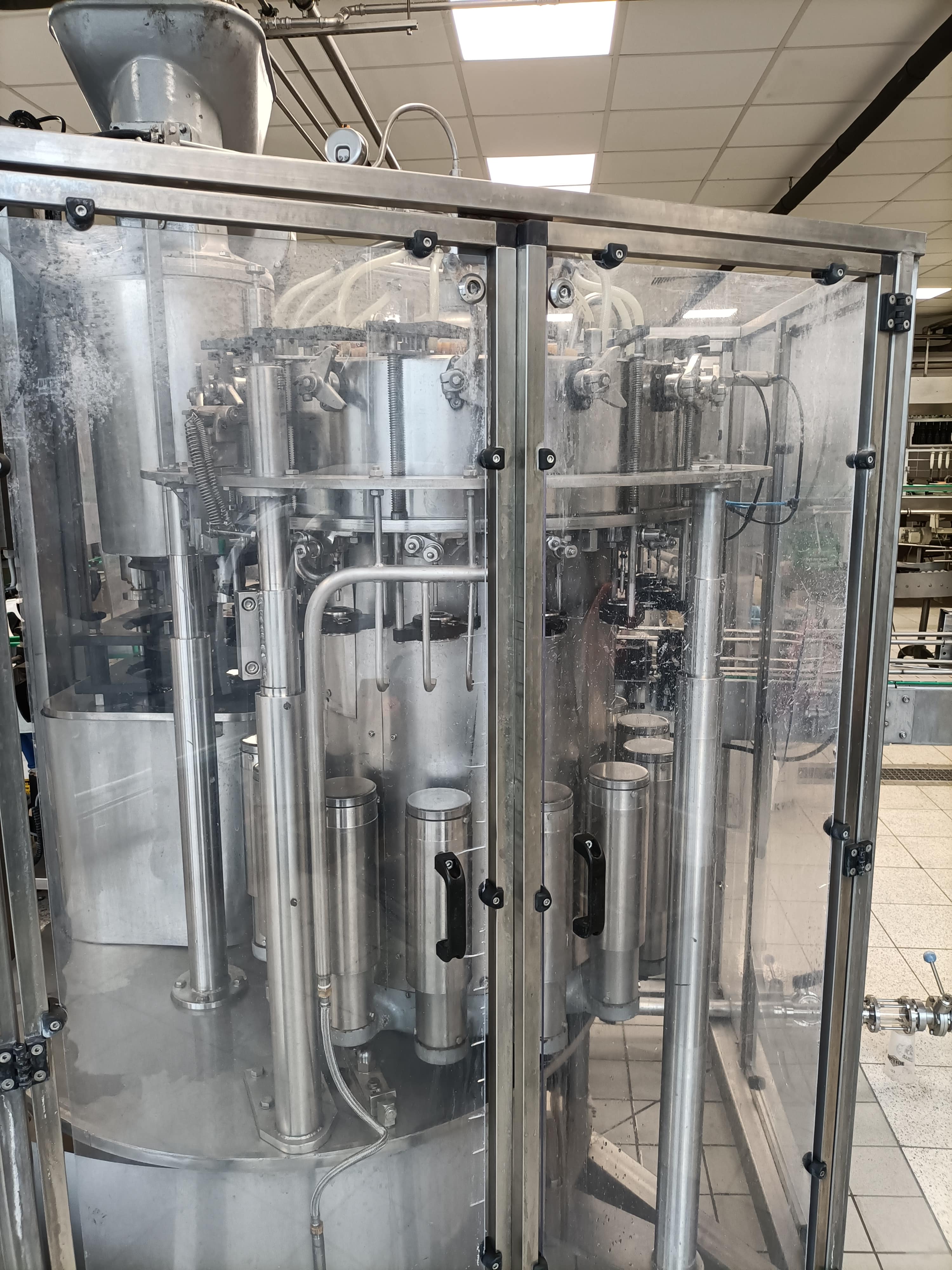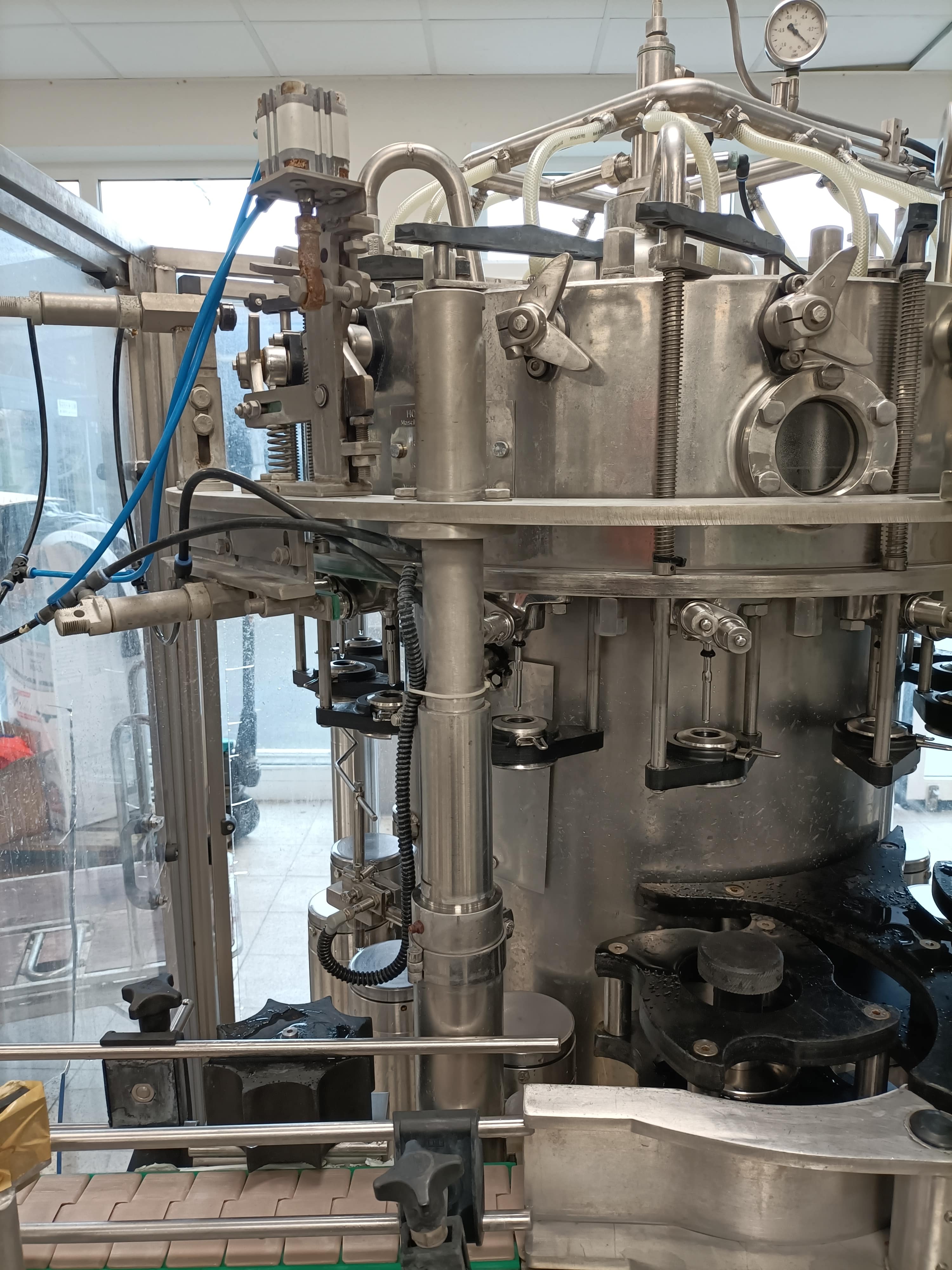Übersicht Dieser Abfüll- und Verschließblock wurde 1966 von der deutschen Firma H&K (H&K VVF 14/3) hergestellt. Die Maschine wurde 2016 einer Generalüberholung unterzogen, einschließlich umfangreicher mechanischer und elektrischer Überholungen. Zusätzliche Dichtungskomponenten wurden 2023 erneuert. Technische Daten  Leistung: 2.500 Flaschen pro Stunde Formate: Vorbereitet für 0,33 l Longneck Fülltemperatur: 6 °C Details zur Überholung und Modernisierung Generalüberholung im Jahr 2016: Vorvakuumierung Neue Drehkugelverbindung Neuer Edelstahltisch Neue Elektrik Neuer Ventilschaltschrank in Edelstahlausführung 0,33-l-Führungssatz Sihi-Vakuumpumpe Erneuert im Jahr 2023: Dichtungen an Hubzylindern und Füllventilen Vakuum- und Überdruckventile mit neuen Dichtungen und Federn ausgestattet