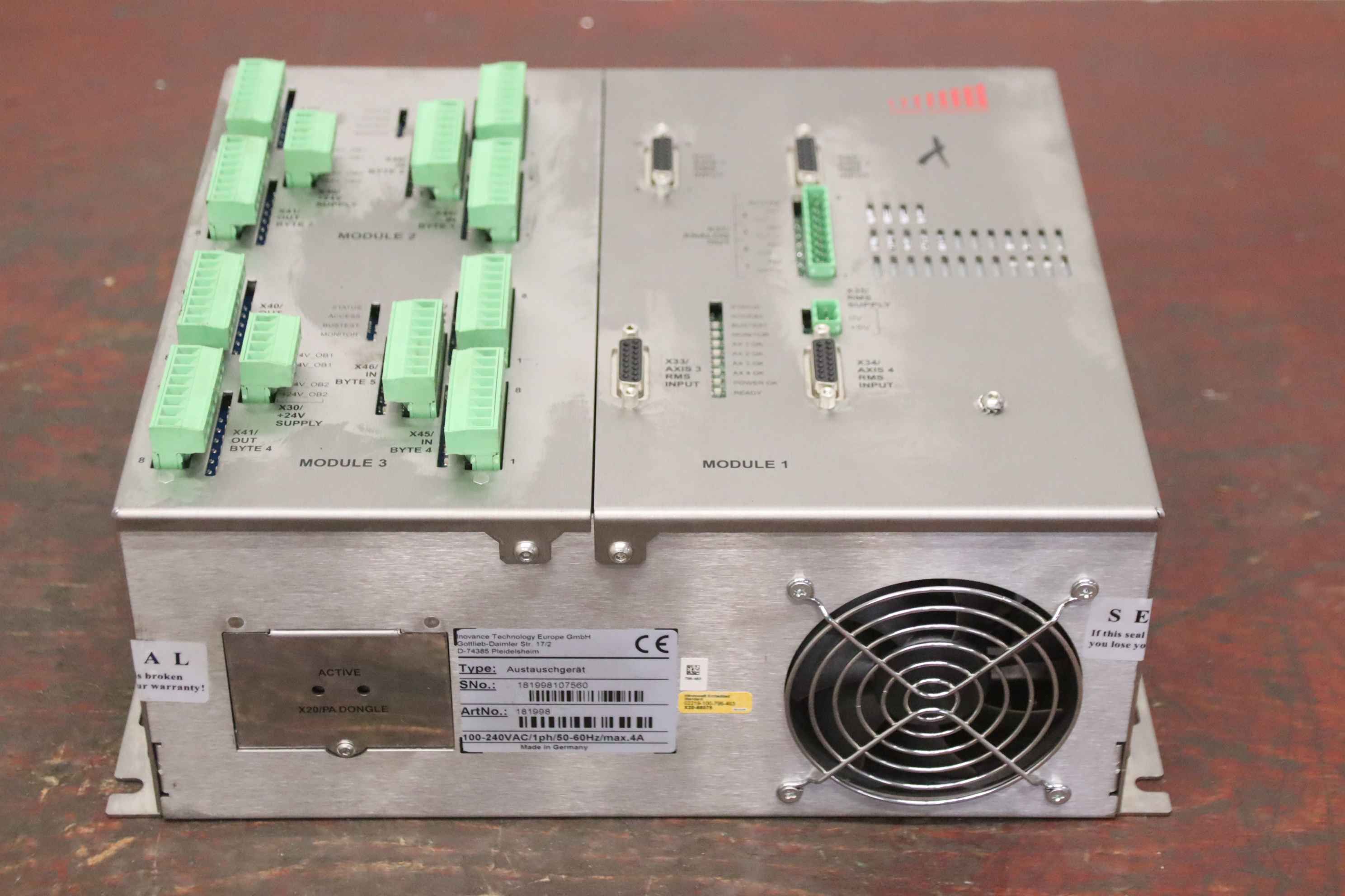CNC Steuerung, Steuerung Rack, Electronic Modul -Hersteller: Power Automation / Innovance Technology, Steuerung -Typ: Austauschgerät ArtNo. 181998 -Einzelkomponenten: siehe Fotos -Abmessungen: 255/330/H140 mm -Gewicht: 5,7 kg