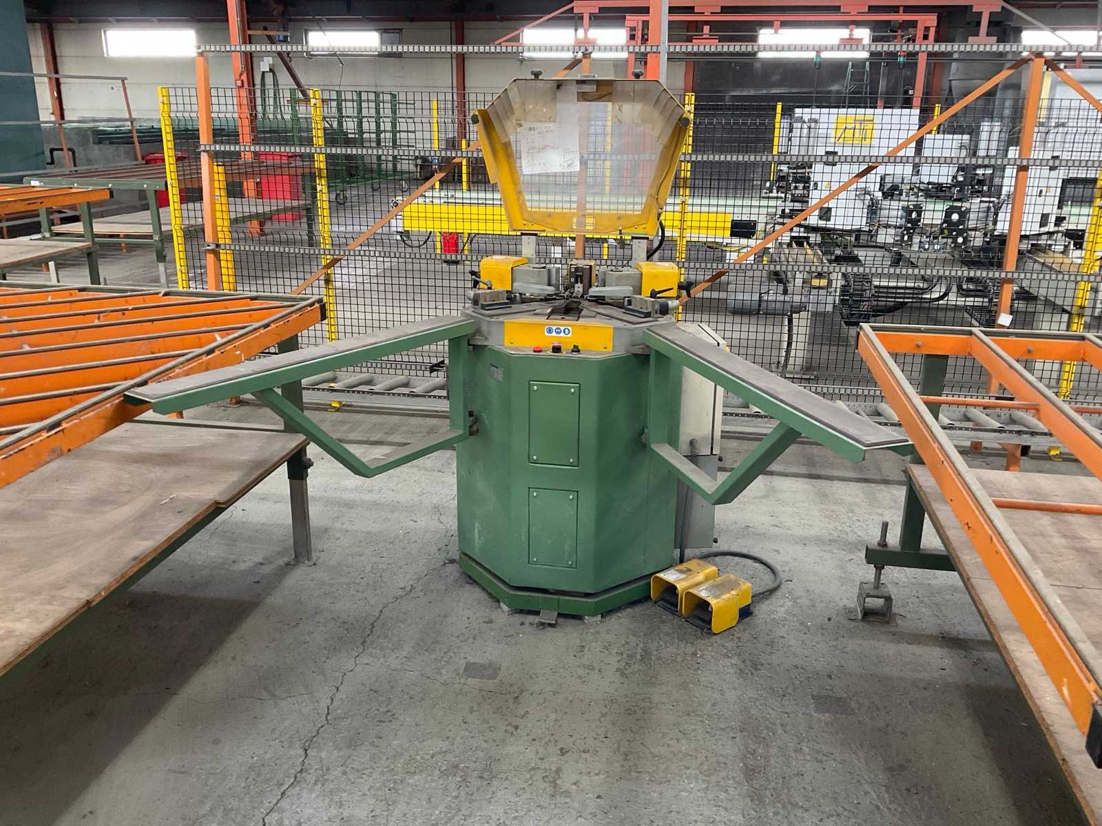 Schnittbreite: 375 mm Schnitthöhe: 150 mm Sägeblattabmessungen: 500 x 30 mm Motorleistung: 2 x 3 kW Schnittlänge: 5100 mm Drehzahlen: 2800 U/min Luftdruck: 6 bar Maschinengewicht ca,: 700 kg Raumbedarf ca.: 6100 x 1450 x 1450 mm Profilauflageplatte aus Stahl Stabile Gußkonstruktion des Sägeaggregates Großer Schnittbereich, es können 2 Profile gleichzeitig gesägt werden Leichte Verstellung des beweglichen Aggregats durch Rollenführung Doppelte Lagerung der Schwenkeinrichtung Gefahrloses Spannen durch Zweidrucksystem Doppelte Führung für den Sägevorschub Hydropneumatischer Sägevorschub Korrekturskala für Außenmaße Linkes Sägeaggregat fest Schwenkbereich 45°-90° Inkl. Absaugung (ohne Verrohrung) ALKO Mobil-Jet 100 Baujahr 2002 Die Daten fü, dieses Inserat wurden erstellt mit ModulMWS - die Maschinenverwaltung von LogoTech oHG.