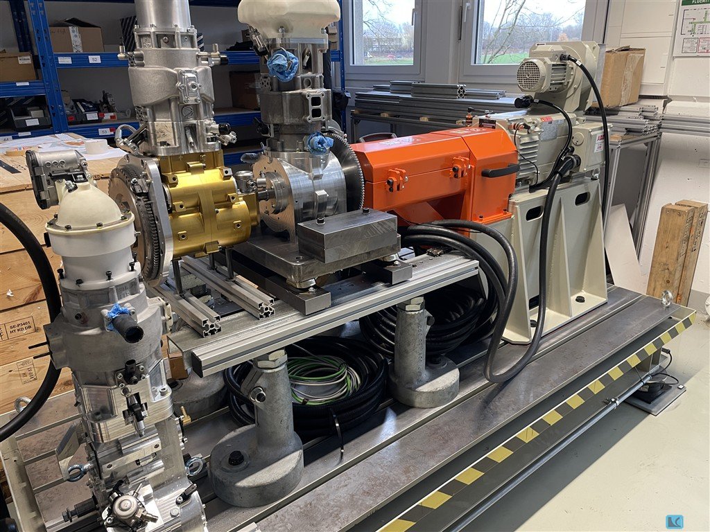 Leistung ·Max. Motorleistung: 30 kW ·Max. Motordrehzahl: 10.000 U/min ·Nenn-Drehmoment (Prüfstand): > 100 Nm ·Max. Bremsmoment: bis zu 122 Nm ·Max. Bremsleistung: bis zu 46 kW (Überlast) Dynamometer ·Typ: AC-Asynchron-Dynamometer, frequenzgesteuert ·Spannung: 360 V ·Kühlung: Zwangsbelüftung (IC06) ·Schutzart: IP23 ·Isolationsklasse: F ·Drehzahlbereich: 0 ? 10.000 U/min ·Dauerbetrieb: bis zu 40 kW (abhängig von der Drehzahl) ·Überlastfähigkeit: 1 min jede 10 min Messsystem Drehmomentmessung: ·HBM T12HP Drehmomentflansch ·Messbereich: 200 Nm ·Genauigkeitsklasse: 0,02 Drehzahlmessung: ·Inkrementalgeber, 1024 Impulse/Umdrehung ·Genauigkeit: ±0,01 U/min Schwingungsüberwachung: ·Integrierter Vibrationssensor Mechanischer Aufbau ·Genutete Grundplatte mit Luftfederung (Bilz Luftfedern) ·Schwingungsgedämmter Prüfstand ·Motorlagerungssystem: oEinstellbarer Alumini ...