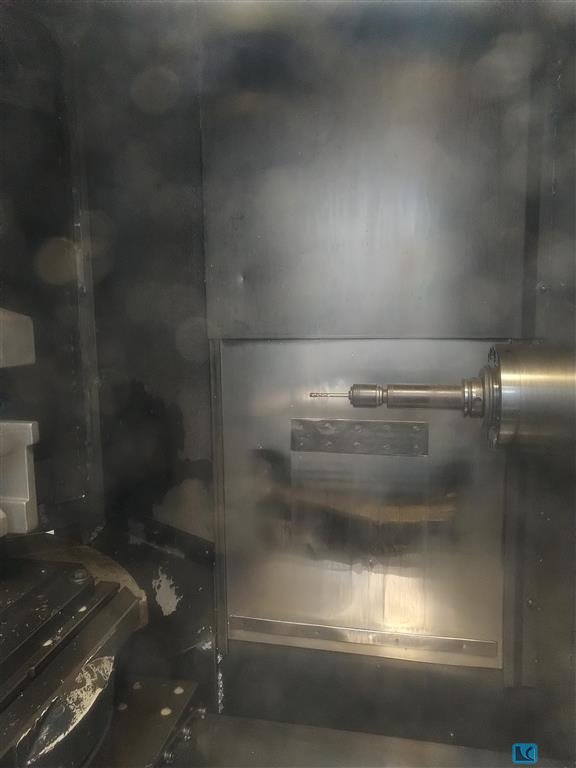 Verfahrweg X/Y/Z: 630mm/630mm/630mm, B-Achse: 360°, B-Achsen-Auflösung: 0,001°, Werkzeugaufnahme: SK40, Werkzeugplätze: 160, Palettenplätze: 6, Palettendimensionen X/Y: 400mm/500mm, Eilgang: 40m/min, IKZ-Druck: 50bar. Maschinendimensionen X/Y/Z: ca. 5850mm/2500mm/2750mm, Gewicht: ca. 12500kg, Steuerung: Siemens Sinumerik 840D. Inklusive Messtaster Blum und Bohrerbruchkontrolle. Dokumentation vorhanden. Eine Besichtigung vor Ort ist möglich.
