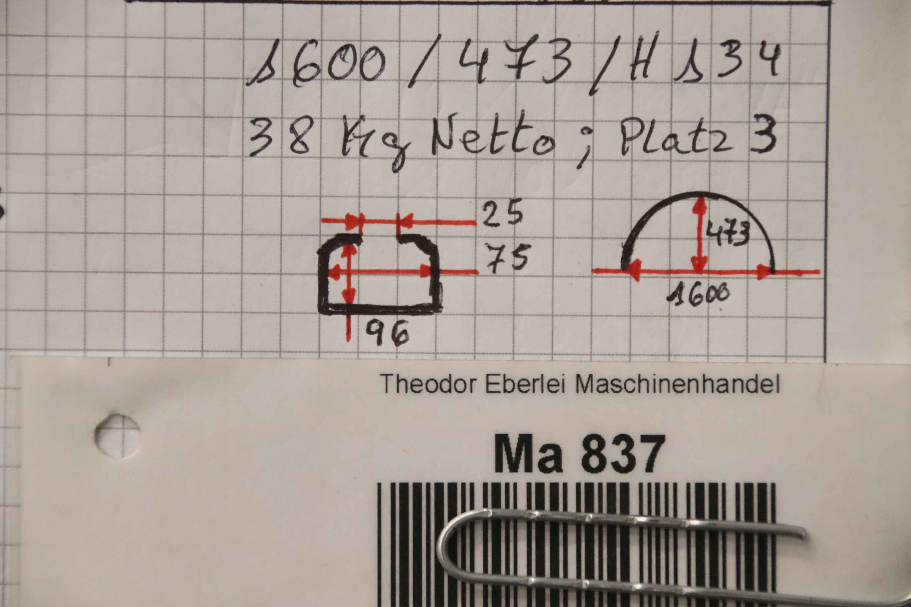 Modell: Breite 105 mm Länge 1600 mm