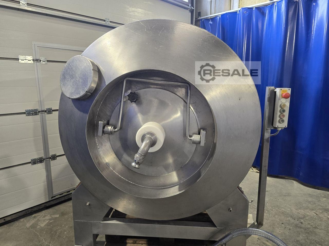 Gebrauchte Injectstar ES-1100. Inject Star ES-1100 Vakuum-Tumbler-Ref.8491D Marke: Inject Star Modell: ES1100 Baujahr: 2005 Volt (V): 3 220 / 380 V / 50 Hz Leistung : 2,2 kW Breite: 1540 mm Höhe: 1800 mm Länge: 2150 mm Gewicht: 750 kg Diese Maschine ist für das Massieren von Fleisch mit und ohne Knochen mit einer speziellen Schallwand konzipiert. Das Produkt wird über die spezielle Schallwand bewegt, um eine effiziente Proteinaktivierung und Massage in einer rotierenden, gleitenden und rutschenden Bewegung zu ermöglichen. Trommelvolumen: 1100 l Optimale Belastung: 500-700 kg Trommeldrehzahl: 1-11 Umdrehungen pro Minute Das System wird von einem frequenzgeregelten Motor über Reibrollen angetrieben. Der Behälter wird entleert, indem er nach links gedreht wird. Ausgestattet mit Computer. Es können bis zu 99 Produktionsprogramme erstellt und gespeicher ...